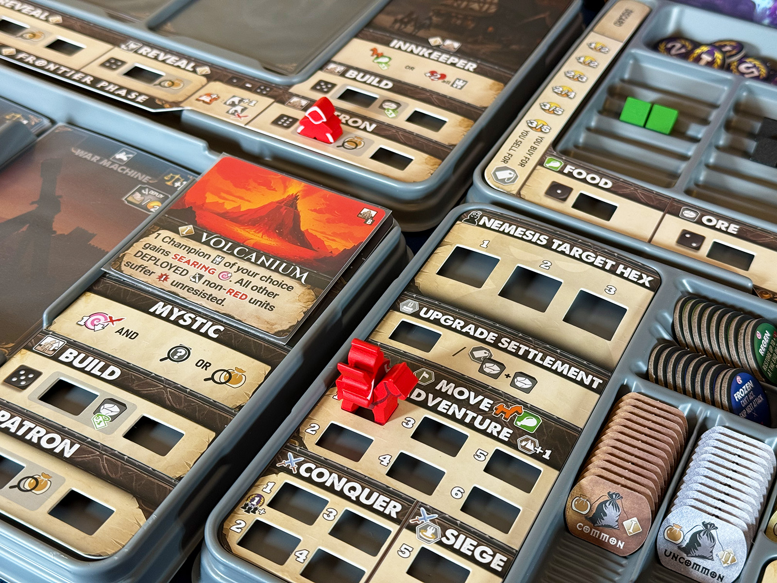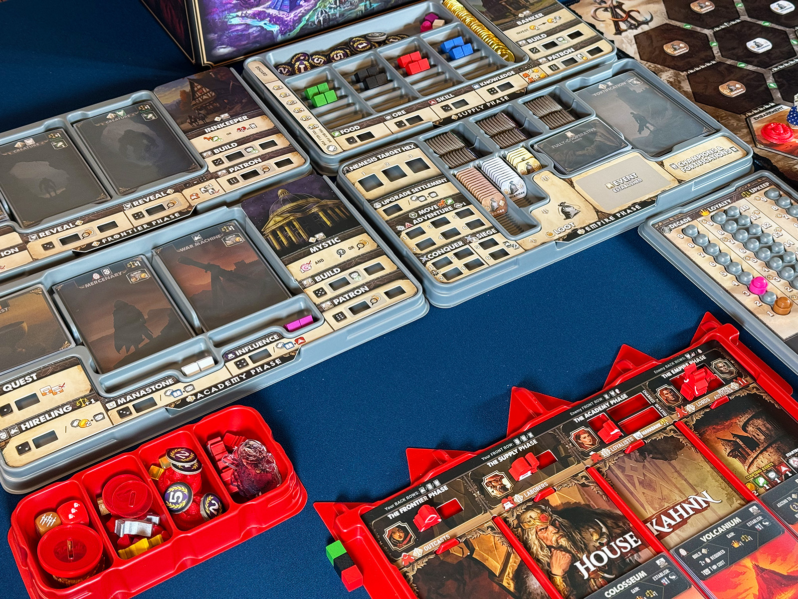 While I appreciate storage trays that can be placed on the table, setup still took a very long time. So much stuff! I was also struck by how dark and drab a lot of the cards looked.