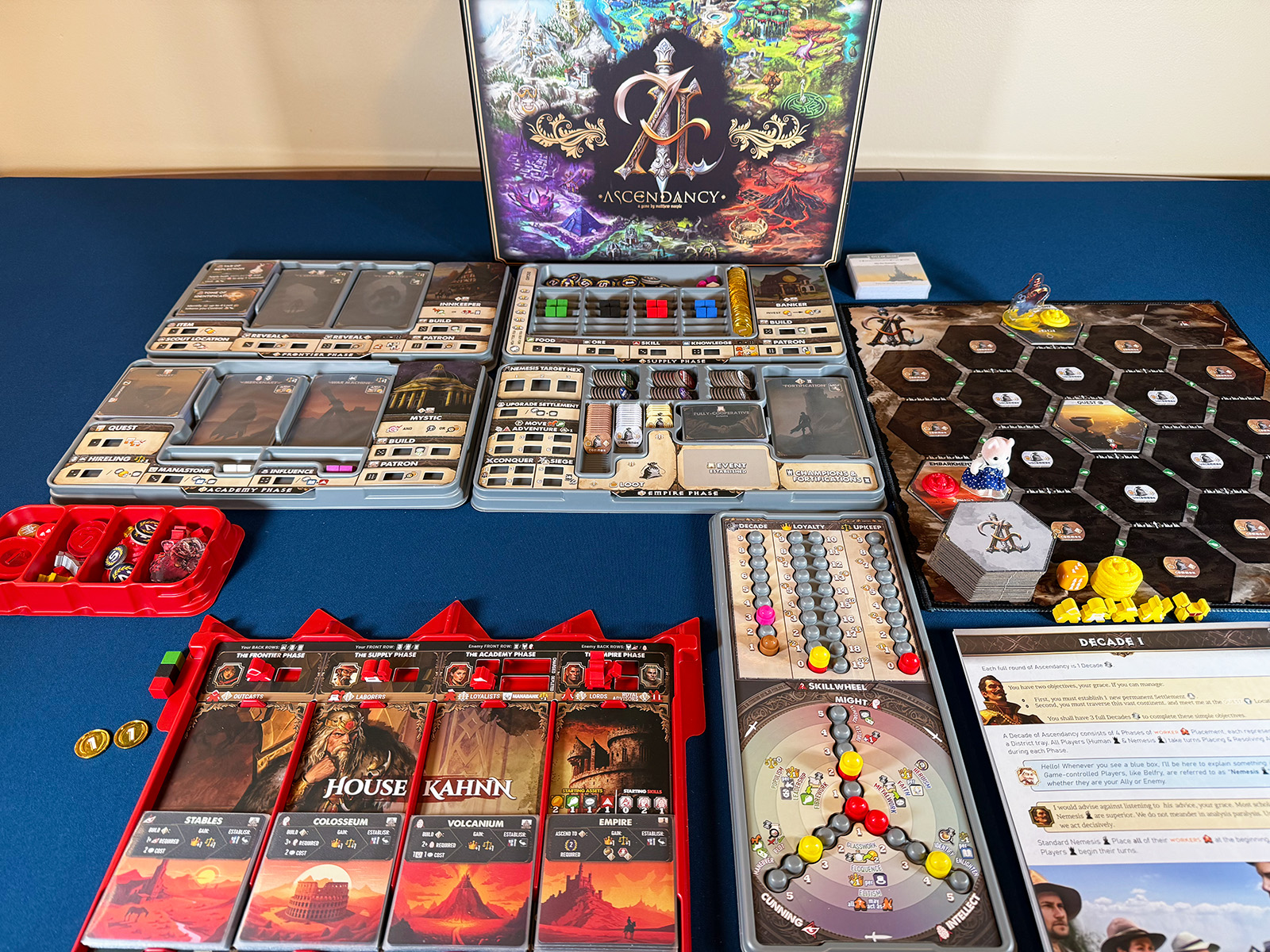 There are some board games I’ve played multiplayer, but set aside for solo. At last, I felt like I was ready to investigate the solo side of Ascendancy! This sprawling set of trays and components is designed to simulate a royal family and all of the options to play across many in-game years. It offers a lot of everything… Which I was hesitant about, but onward I went!