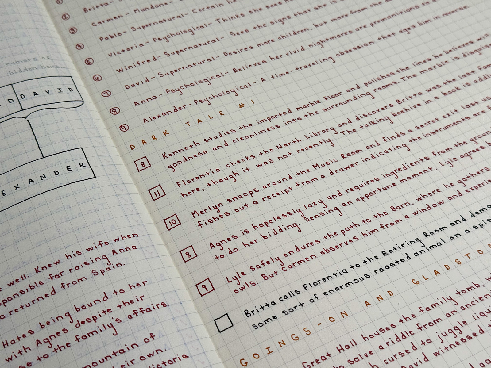 I also had a few connections from the family to the staff, which set up some underlying tension and secrets.