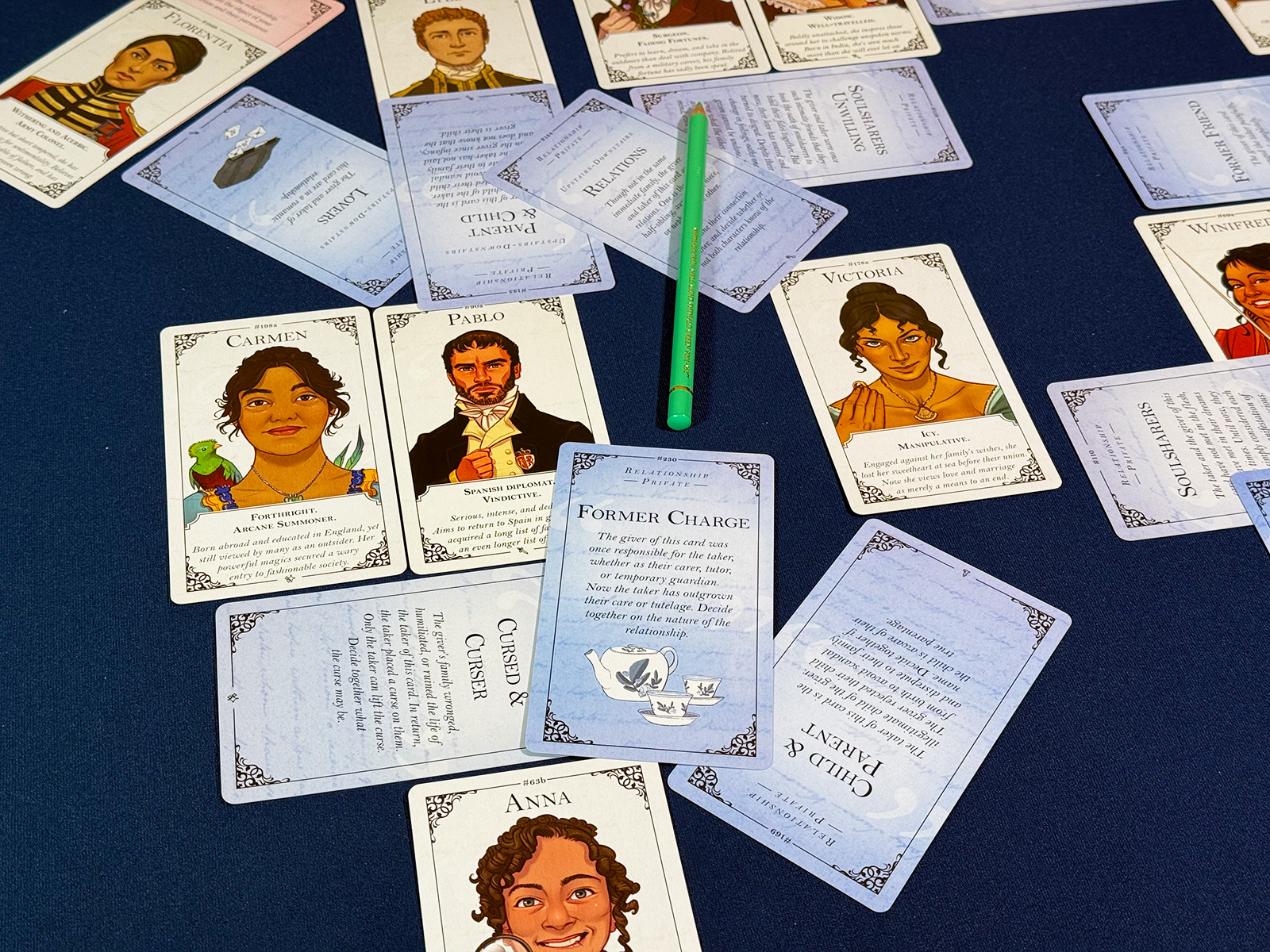 With a selection of Good Society RPG cards, I randomly created a full family tree with tons of dramatic story ideas.