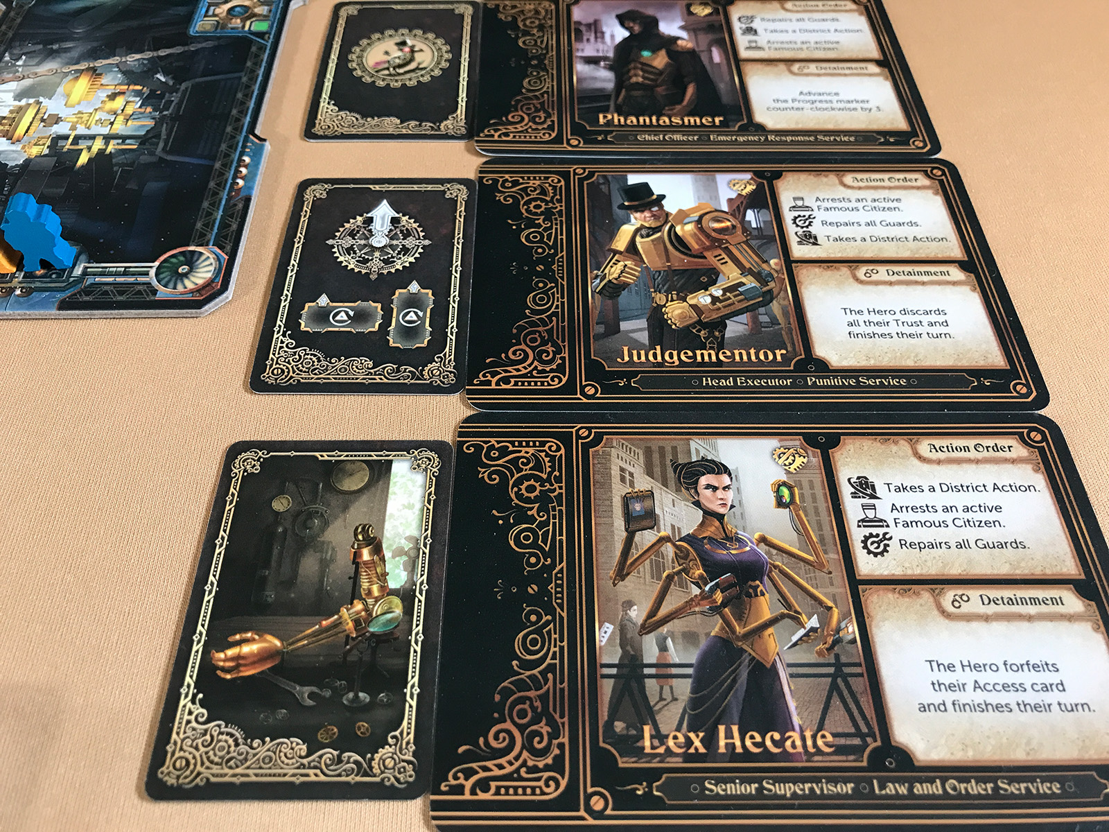Phantasmer, Judgementor, and Lex Hecate are present in every solo play. Too repetitive? I haven’t found it to be the case. They share a movement deck with random cards.