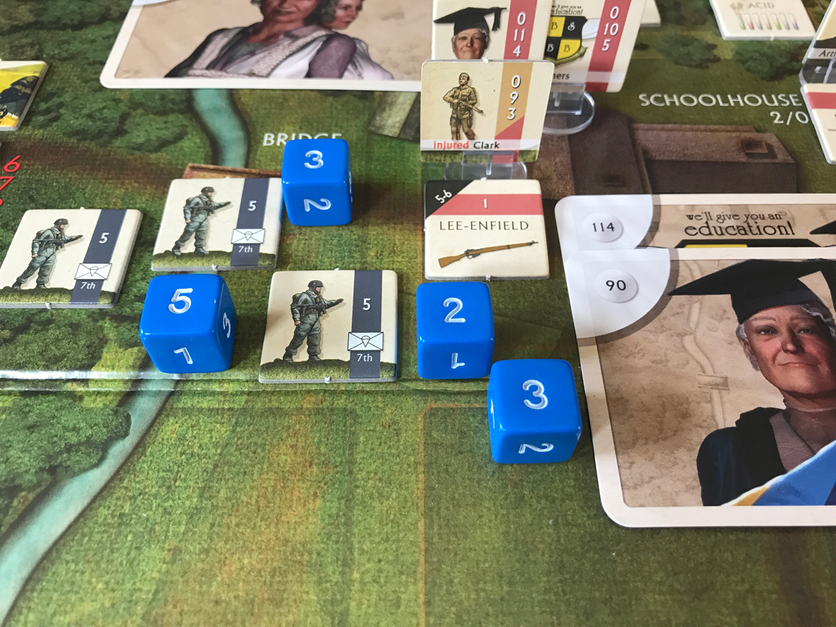 Do you have any fond memories of Codeword Cromwell? It has so many stories to tell! Although I like to focus on the humor of defending with makeshift weapons, there’s a serious and heartfelt tale at the center of it all. What do you think will happen to Birkham Stokes? I took some chances and that southeast square is looking extremely dangerous!