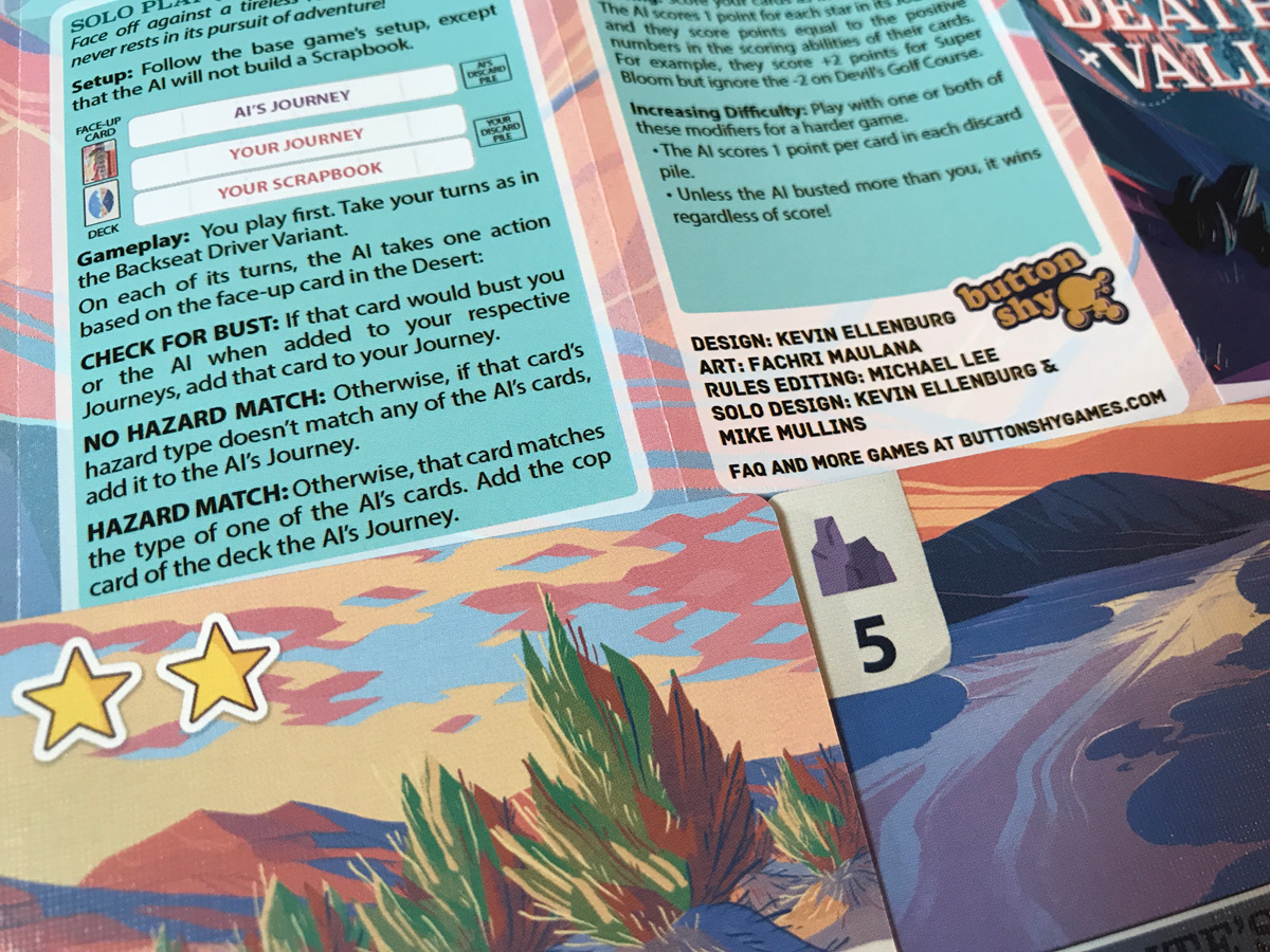 Another new game! Death Valley arrived just as I was preparing to move onto an older game in my collection, yet it seemed like the perfect time to take it for a drive, if you’ll pardon the pun. Ha! I always enjoy the compact nature of these wallet-sized games and eagerly jumped into the rules. I wasn’t sure if this would be too light… But to the table!