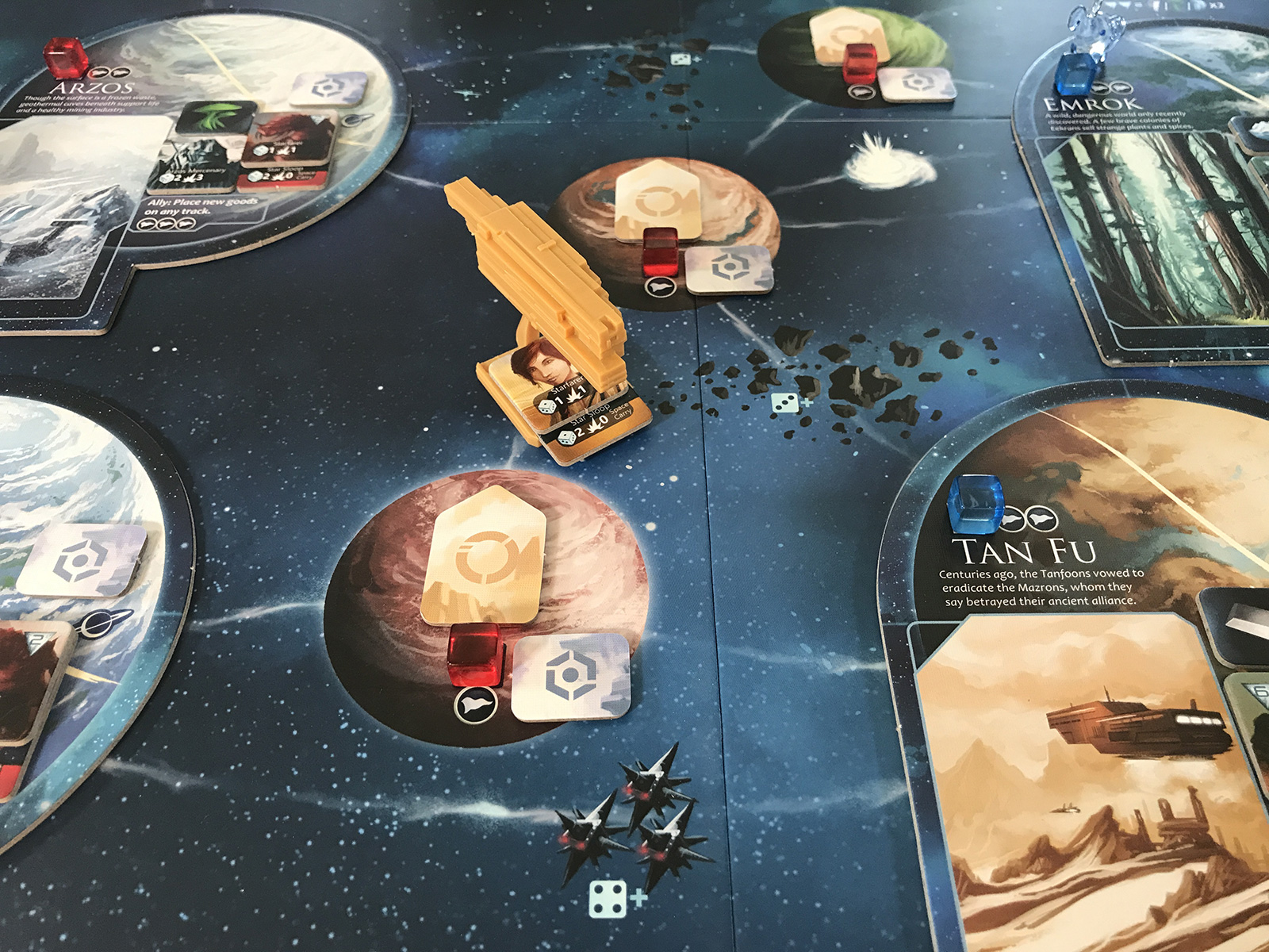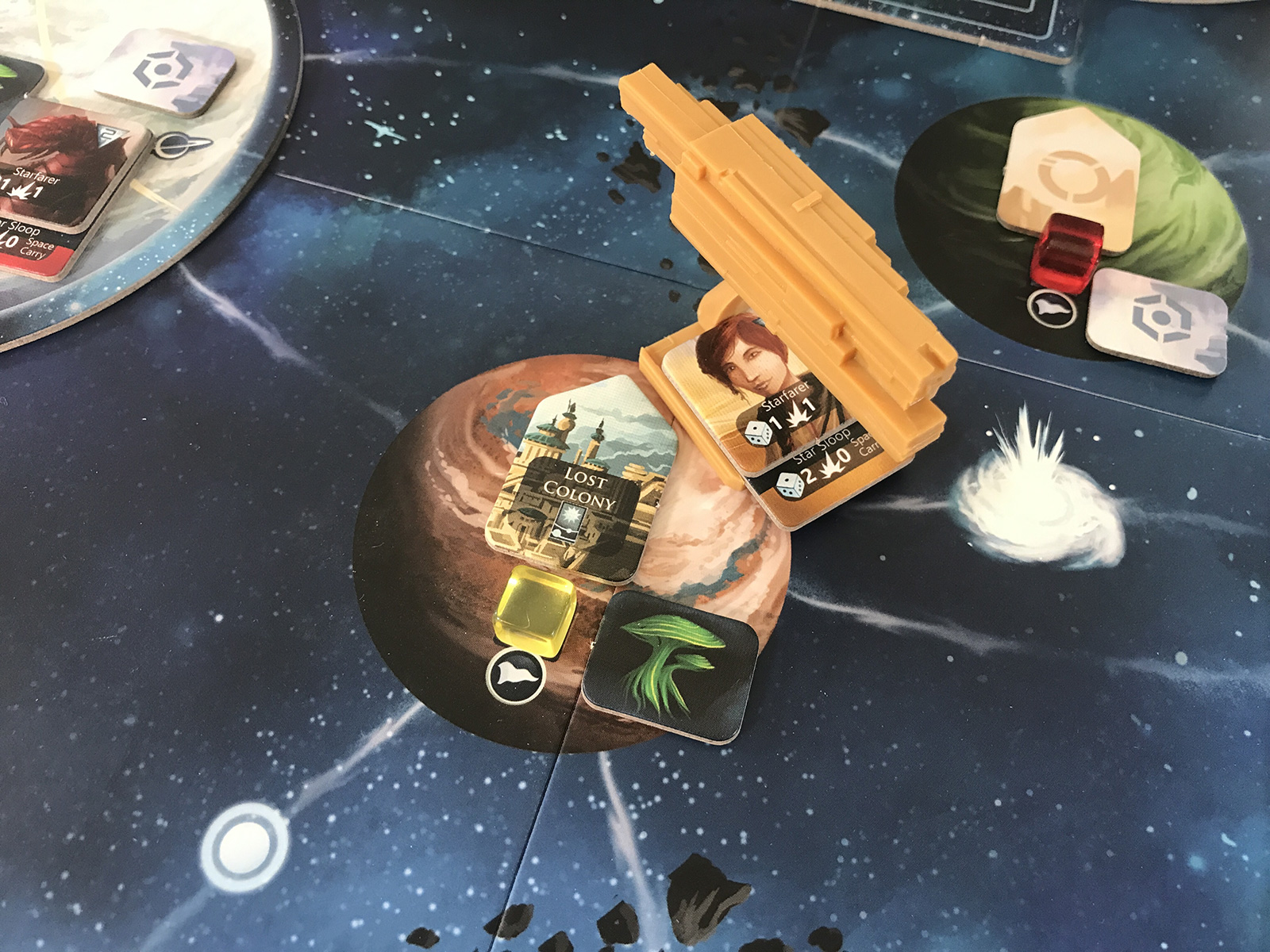 On one hand, I broke the game and had an indestructible planet! Yet this posed no challenge, and had I seen it early on, I likely would have placed the researchers elsewhere. My ship slowly floated along, engaging in a few important battles that were overshadowed by the constant and meaningless combats with the pair of solo opponents.