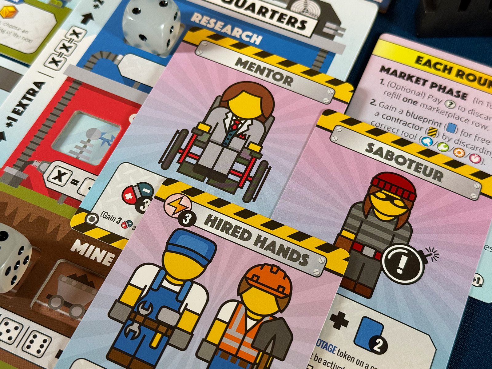 Since contractors cycle so slowly in solo, I usually keep my hired cards nearby to add to the narrative. This play was fun with a trio of interesting characters at various times.