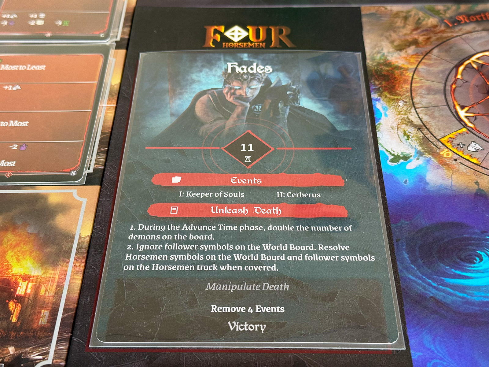 Although I was away from home for roughly a week recently, I couldn’t stop thinking about Four Horsemen! Indeed, as soon as I returned, I continued on my quest to save the world in this threat management experience. Yet I was in for a challenge with my chosen matchup… Such an excellent game! Settle in for the almost endless tale of Achilleus vs. Hades!