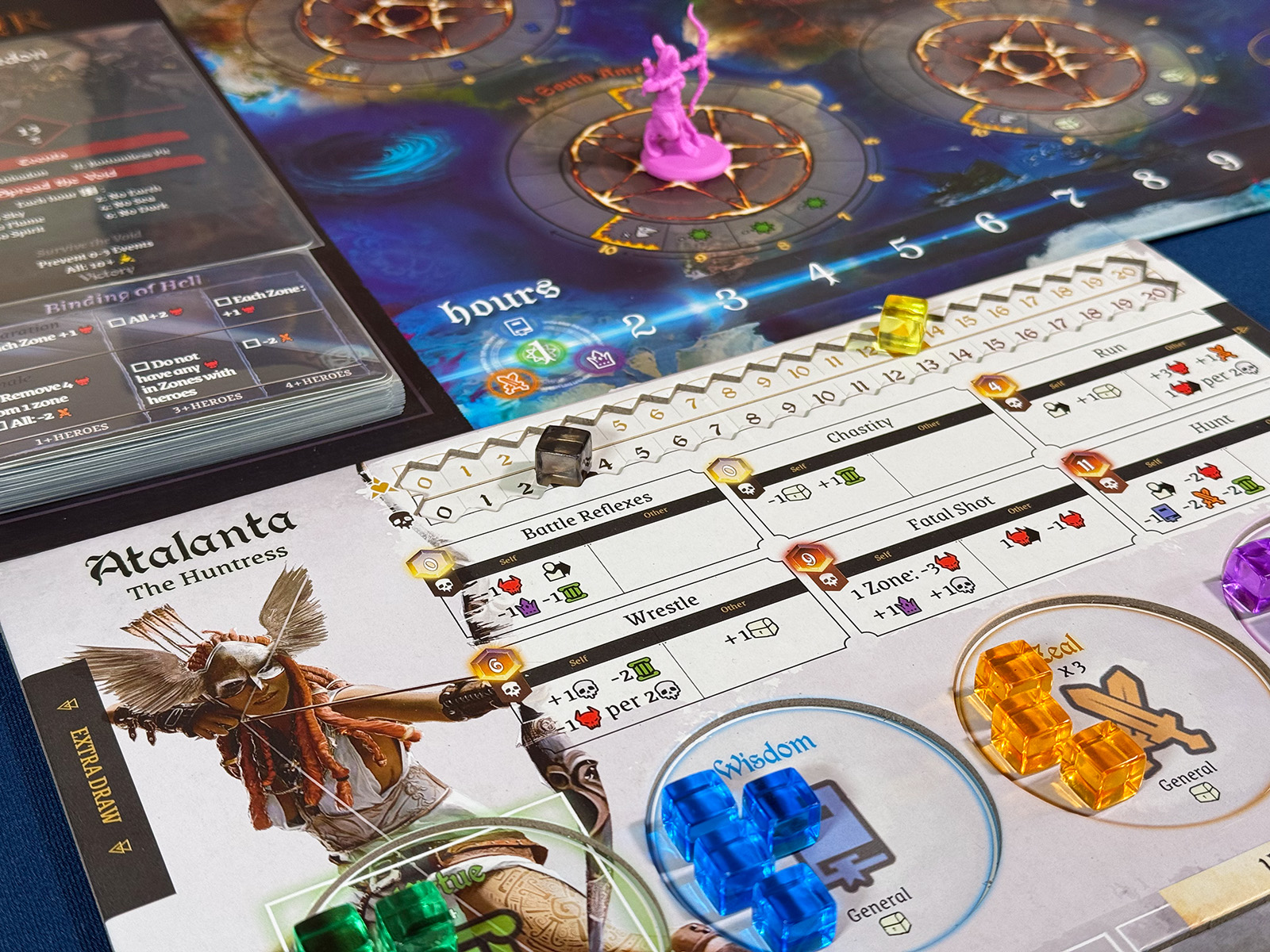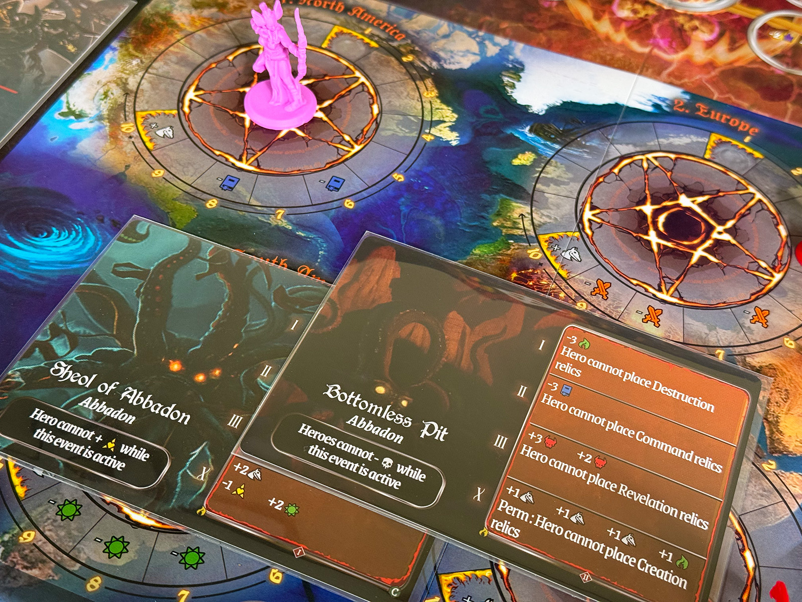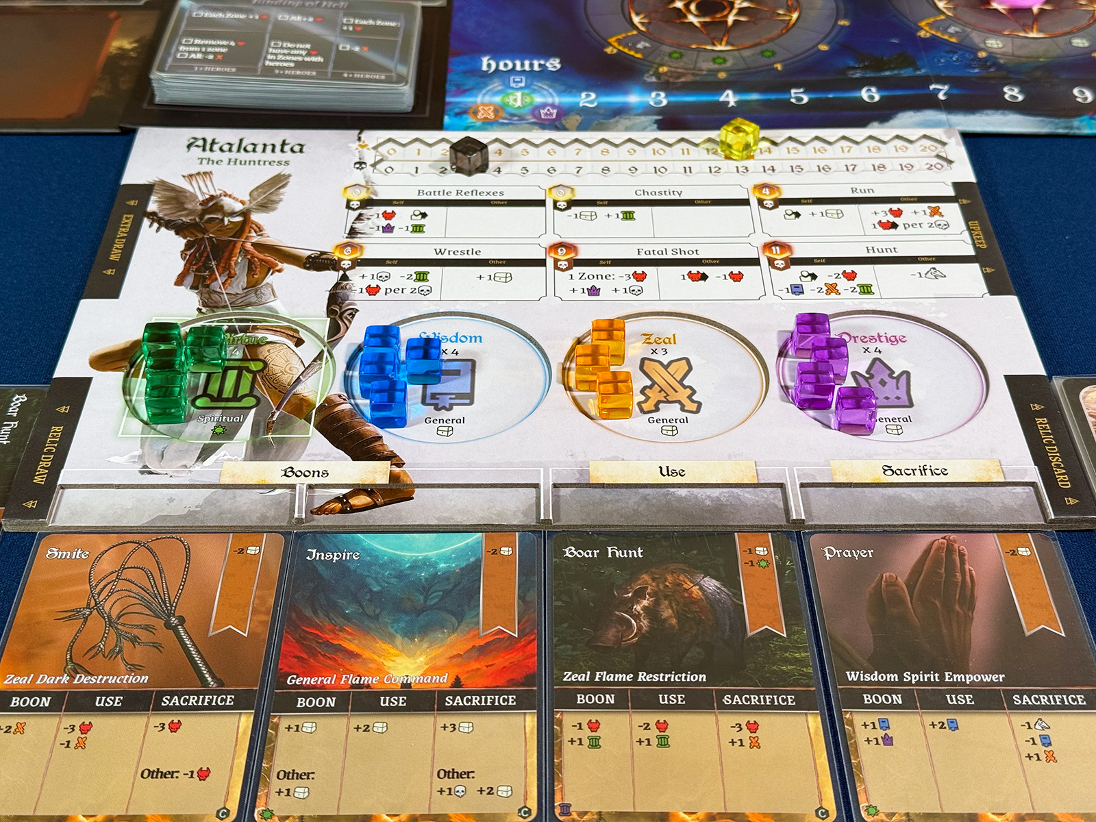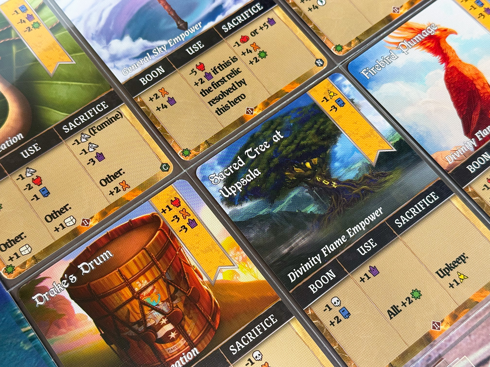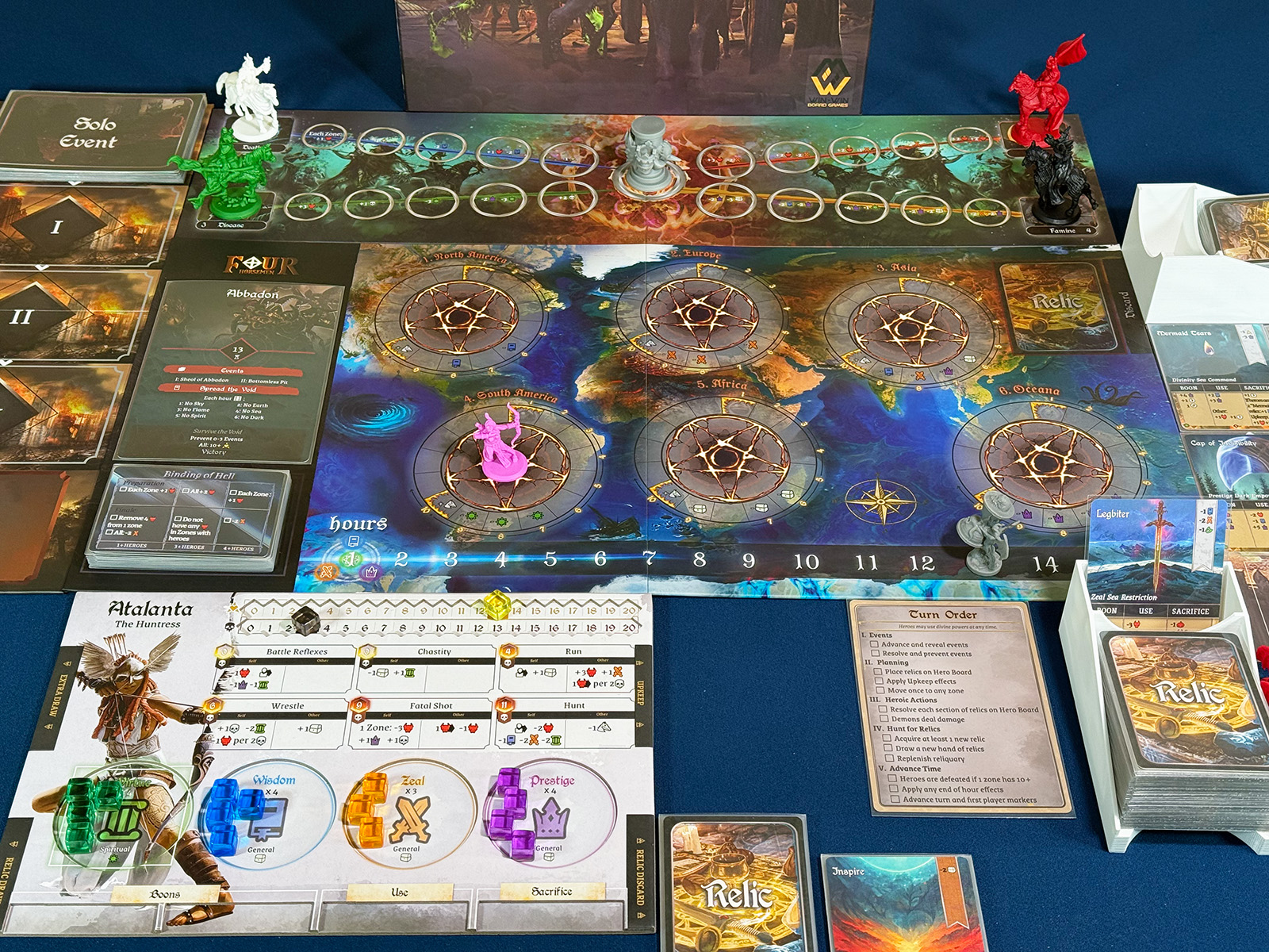 Setup involves creating the relic deck by combining a base set with any pantheons of heroes in play. It makes sense, yet the icons are beyond tiny and it takes ages to sort at the end.