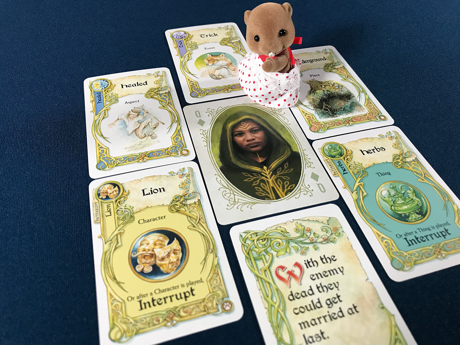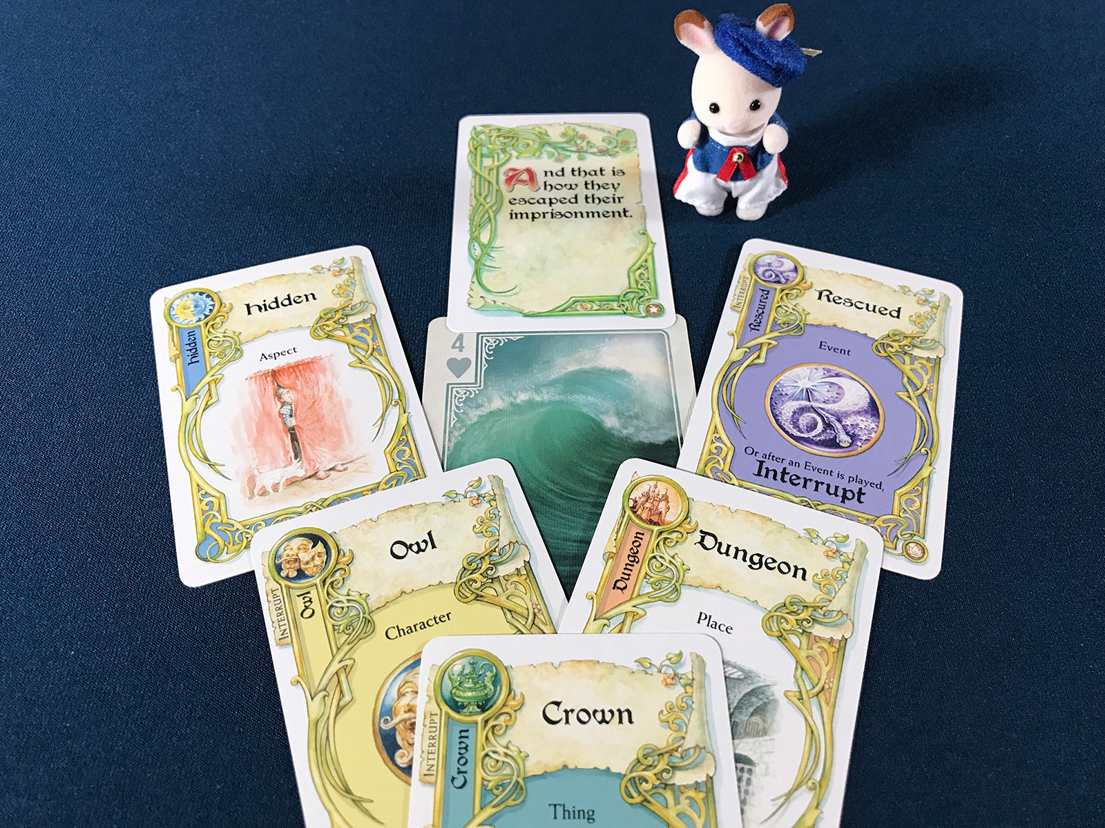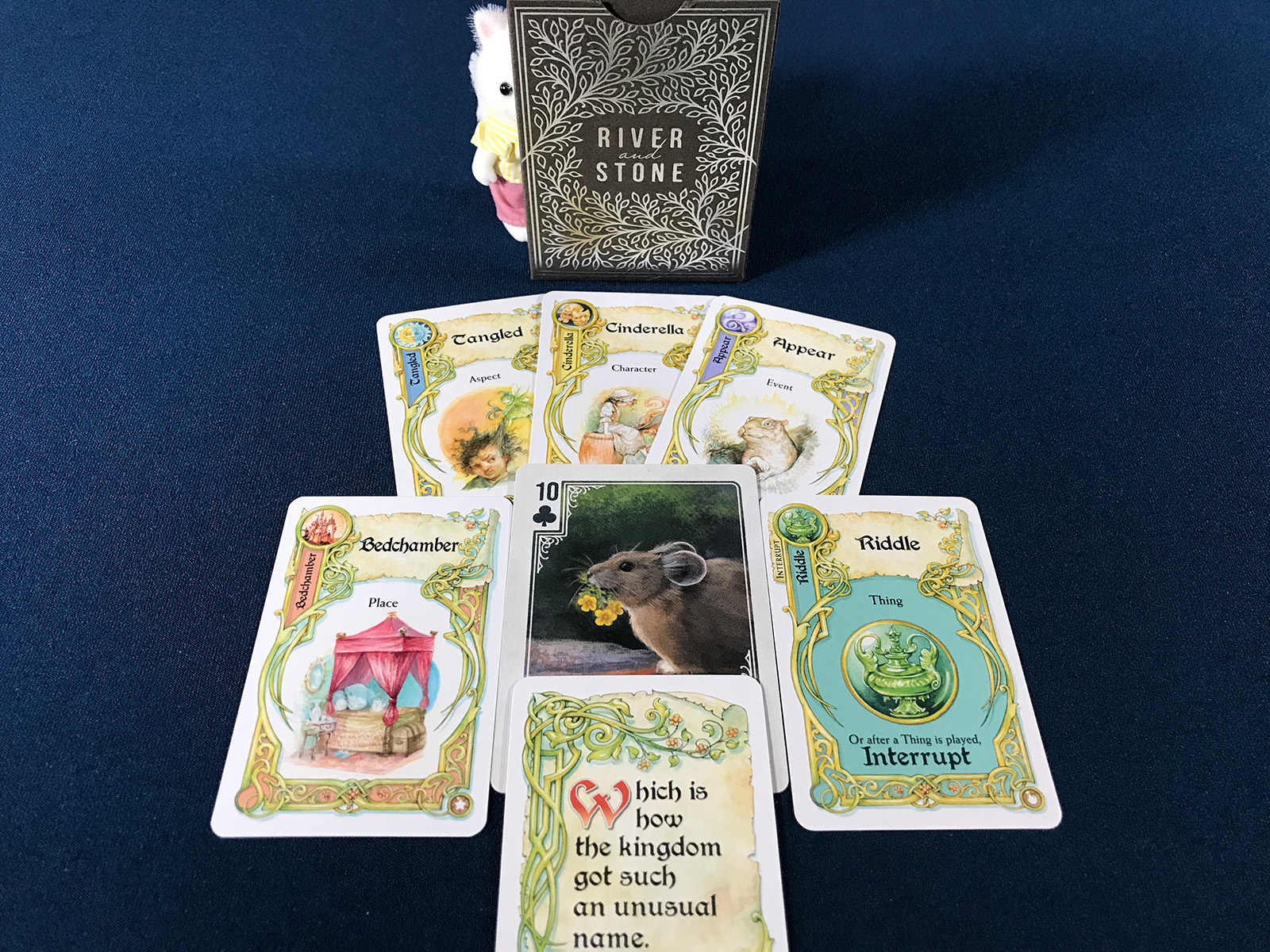 The first one in the door was a very chatty little rabbit. I used some Once Upon a Time cards to generate details.