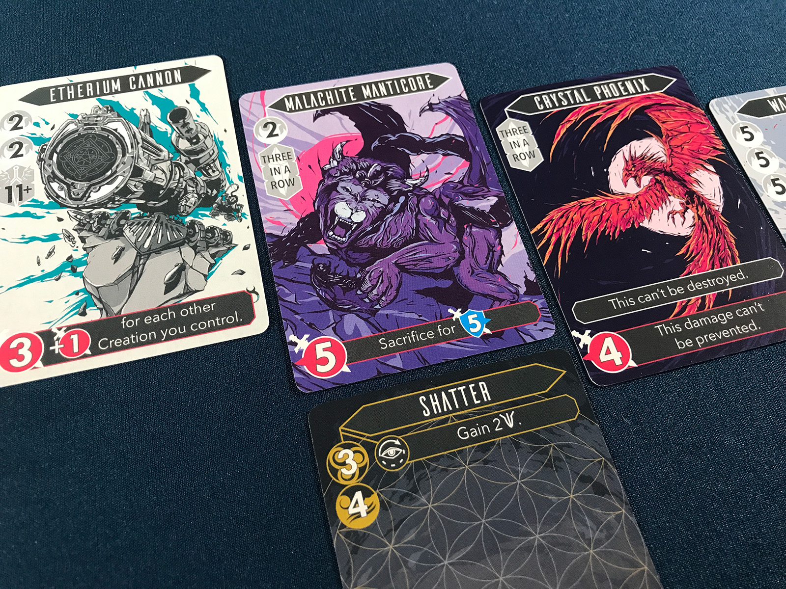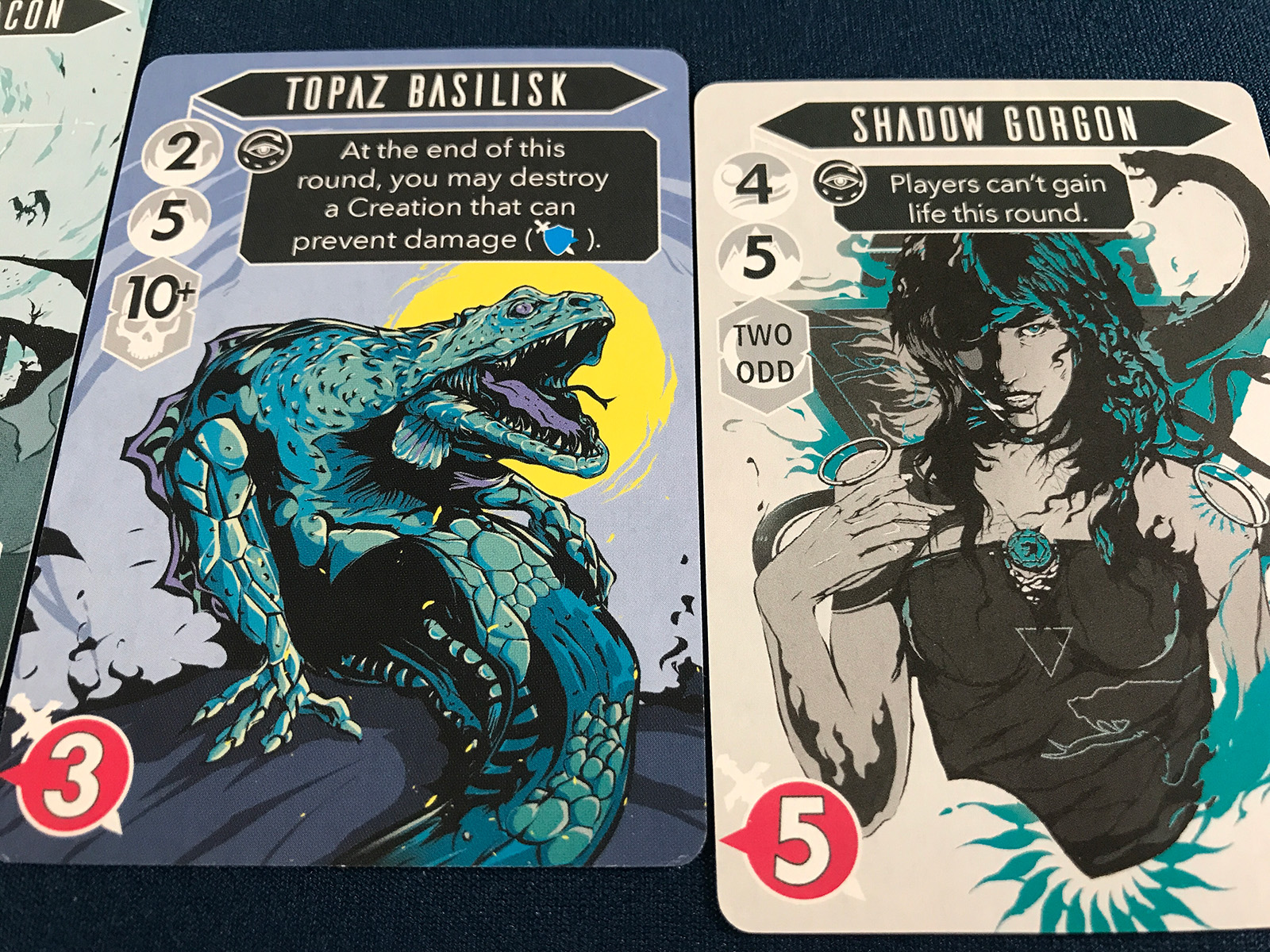 Creations remain out each round, often providing attack or defense. Some had additional abilities, like increasing the hand size to offer more options each round.