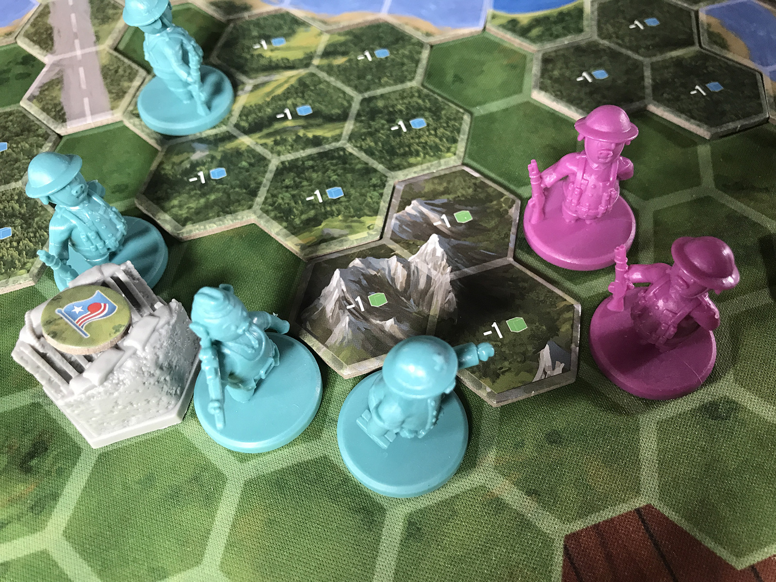 - For the size of the battlefield, the components don’t always fit in the hexes or are too small to see from far away.