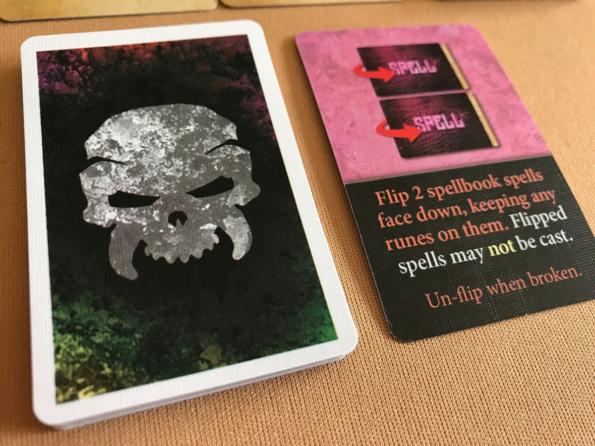 The odd thing is that a few of the spells aren’t useful in the solo mode, though the rules don’t state to remove them. Then again, a curse blocks some spells, so it works!