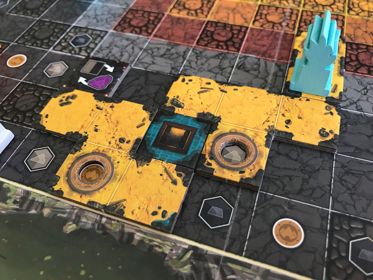 My first play went spectacularly horribly as I failed to grasp all of the mechanics! The curses piled up while I built tunnels out of lowly stone… A poor strategy, indeed.
