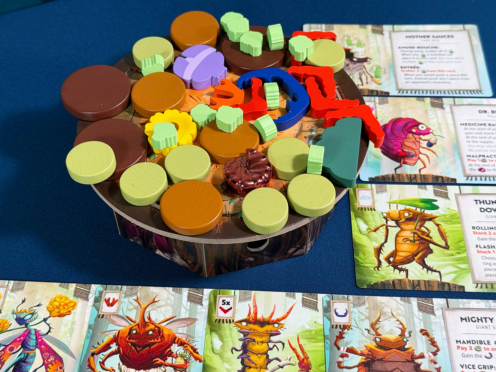 How cool! With more insects came more pieces and wild ways to move everything around the ring. Mother Sauces scattered a whole bunch of pieces, which was awesome! I really enjoyed my time exploring the different ways to move the pieces around. It might not turn out to be something I’ll play forever, yet this is one memorable insect lineup!