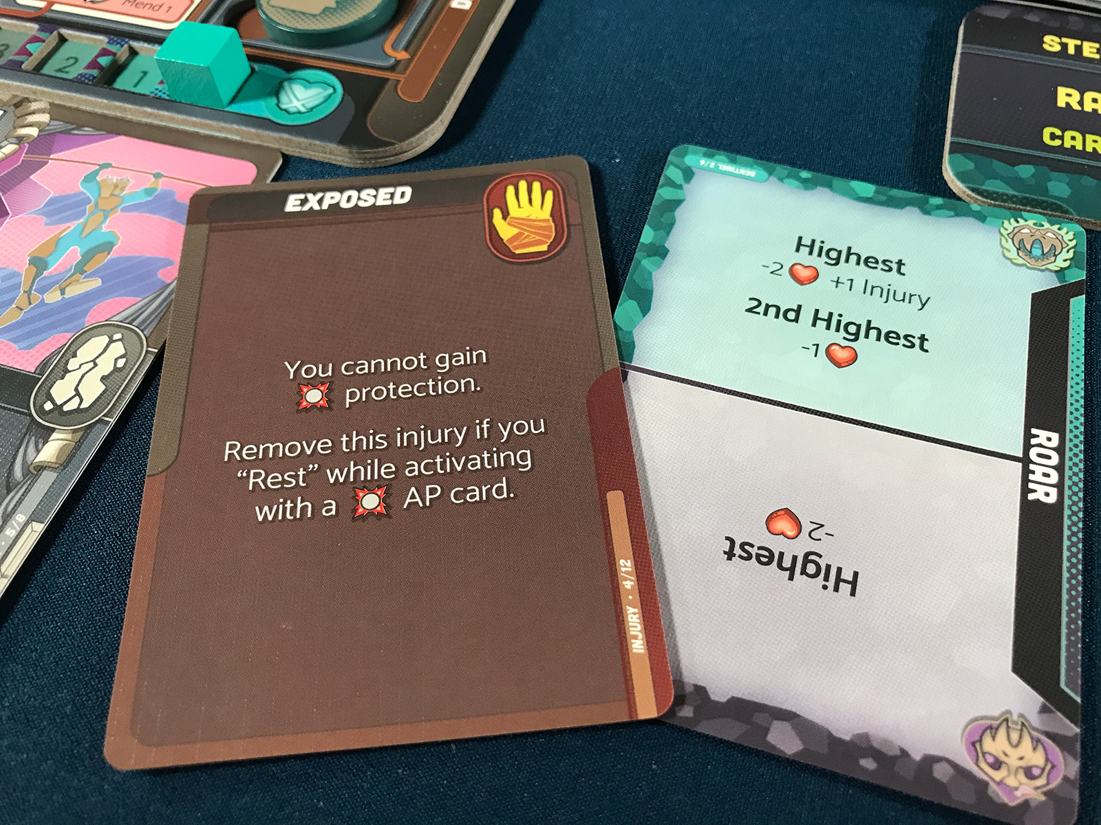Although not every leviathan makes use of them, the injury cards are there to add complications. Hazard was exposed at one point, leaving her open to more damage.