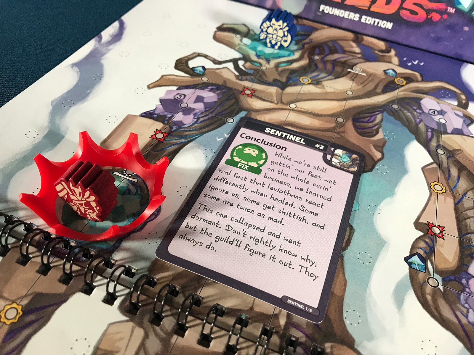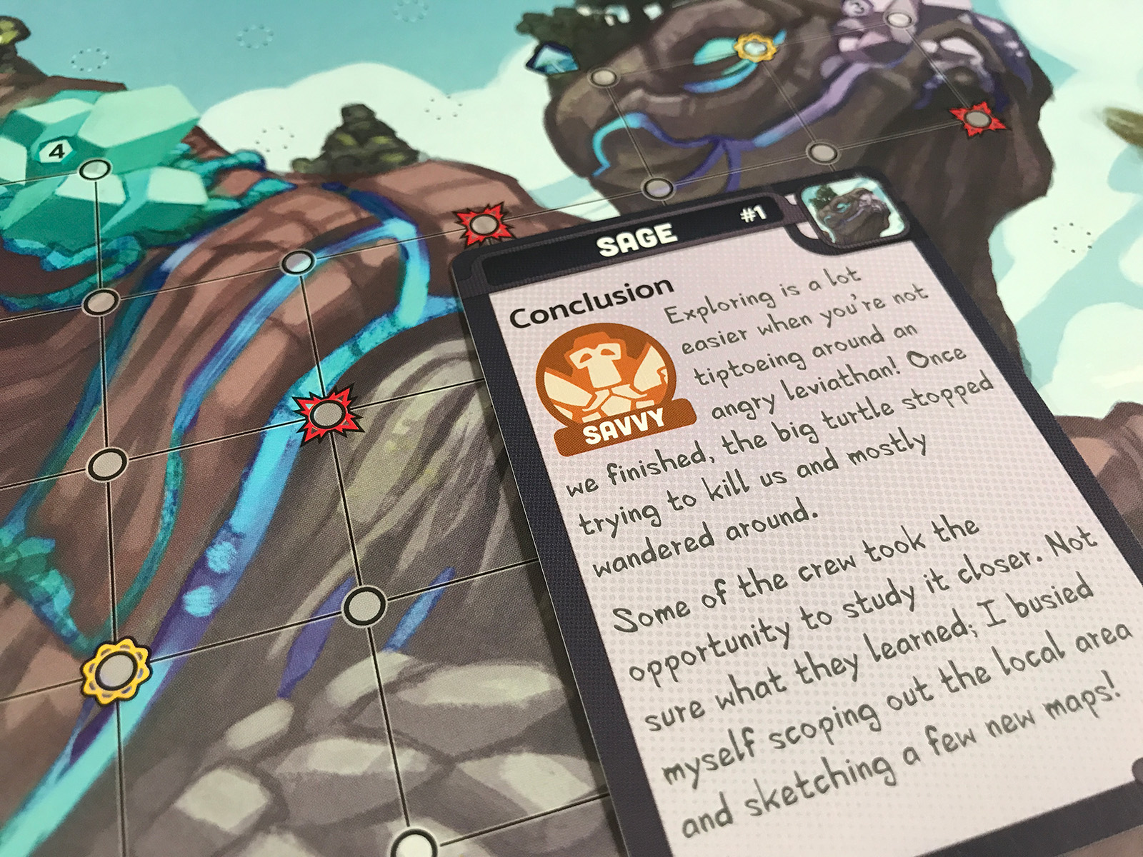 Each leviathan includes a story card with some bits of information. These aren’t spoilers, but provide more insight into the world and what the climbers experience.