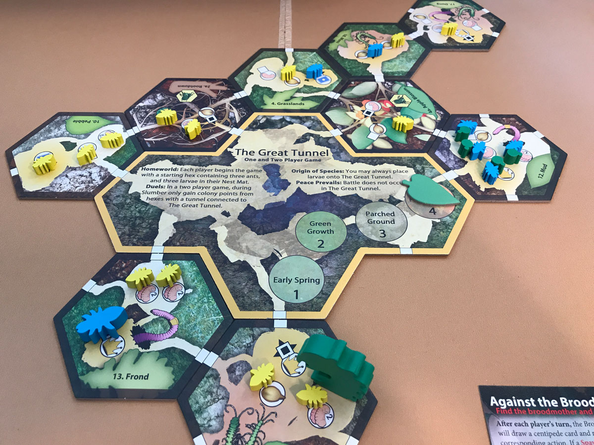My first attempt to locate the broodmother in March of the Ants pretty much fell apart. Still, I enjoyed learning the new rules included with the first expansion and putting some ideas into practice. It’s hard to describe how fun and challenging it is to manage a little colony of ants. I went back to the meadow to fight off those terrible centipedes…
