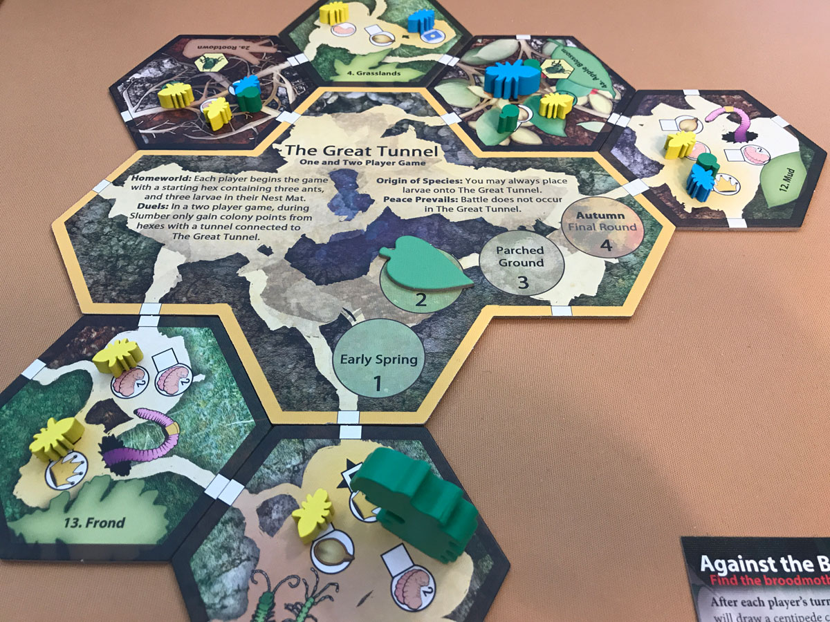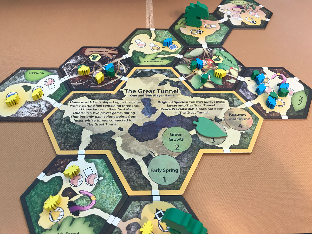 In the base game, I often found that the centipedes moved into my own hexes and brought the battles to me. With the expansion, it was up to me to direct the ant armies.