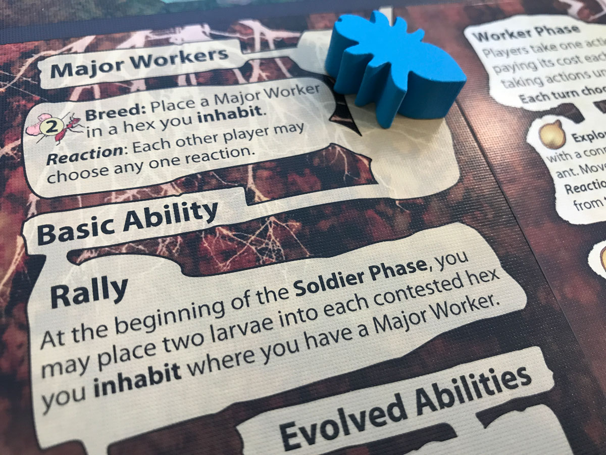 In particular, getting a thorax evolution can make the explore action all the more beneficial. A major worker can effectively reveal 2 hexes and get closer to the enemy nest.