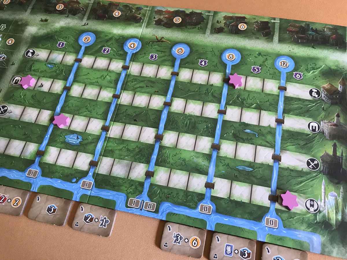 The privilege tiles, separated by values I and II, provide unique bonuses throughout the course of play. It’s vital to know which ones to collect at the right times.