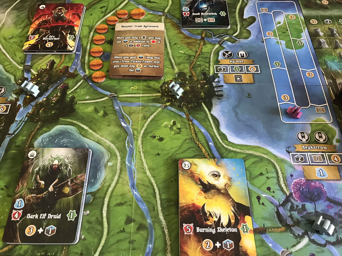 When I play on my own, though, I like to feel like a world is alive. Valeria spans multiple games and seems like a rich sort of setting. Yet I just felt like I was moving my margrave pawn around with no guidance. Slay a monster. Collect a citizen card. Build a ward tower. Ship out goods. Everything felt disjointed, and I wanted to like it all so much!