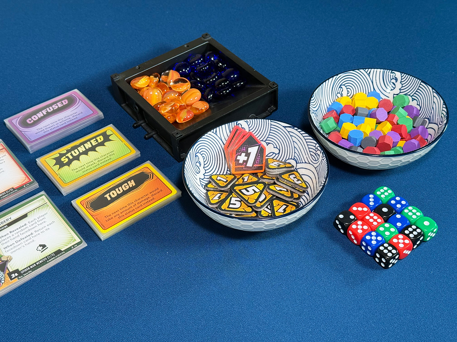 I’ve also sometimes struggled to see the all-purpose and damage counters on cards… More easy fixes! I grabbed a bunch of small dice to track damage on allies and minions.