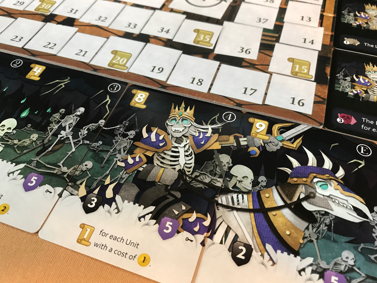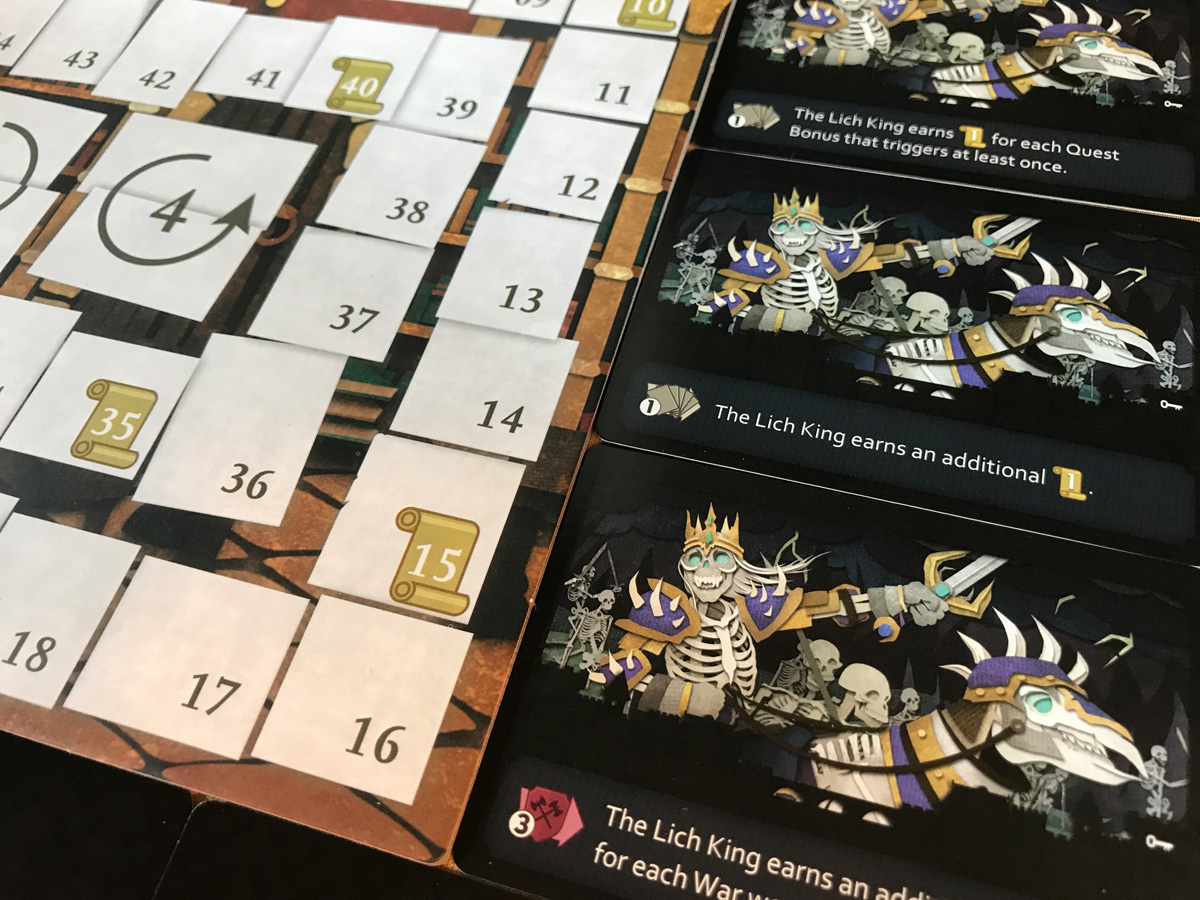 The solo mode is implemented in many excellent ways. I enjoy the goal of achieving a high score, yet it’s often very fun to have a solid solo opponent. Enter the Lich King!