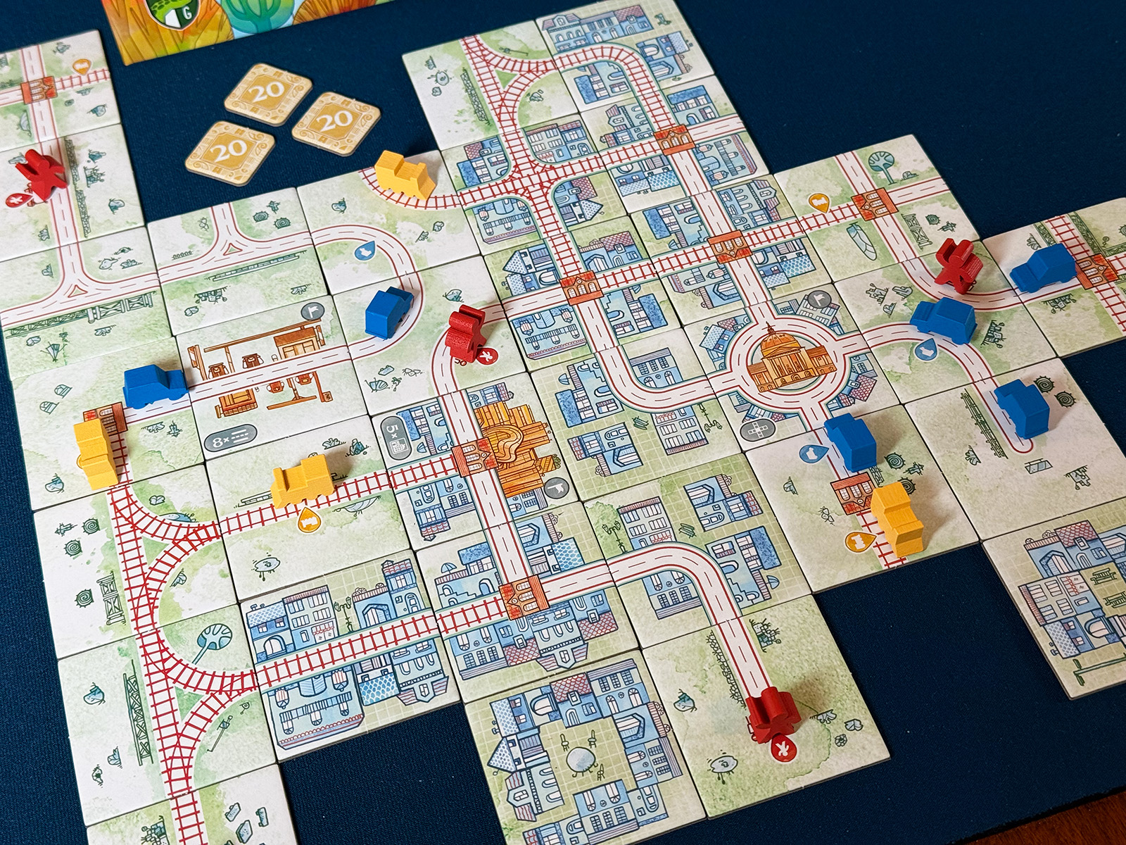 Hurray for solo challenges and missions! I only made it through the first few and enjoyed building the routes. The later restrictions sound interesting, too, although I don’t expect this one to be too challenging. With so much strategic depth in a lot of my other solo games, I’m happy with one that isn’t designed to be extremely difficult! Being able to build routes and trace the lines that these little cars and trains move along is quite delightful and relaxing.