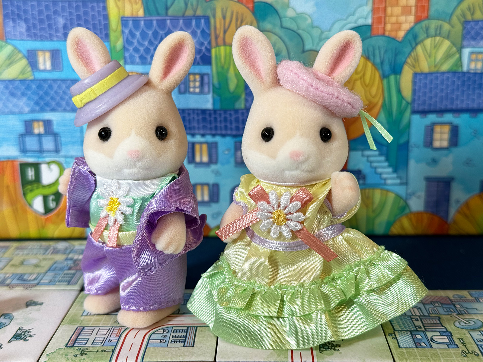 Excellent timing! With this delightful color scheme and setting, I knew some Calico Critters would be along to supervise my towns and railroad tracks. Talk about fancy!