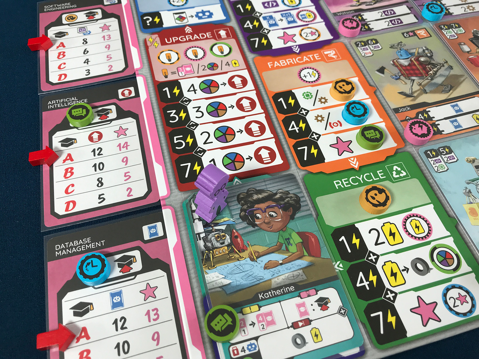 During this solo campaign, I played as Katherine. She had a huge bonus when it came to her classes, where she could advance a tier right before final scoring. So cool!