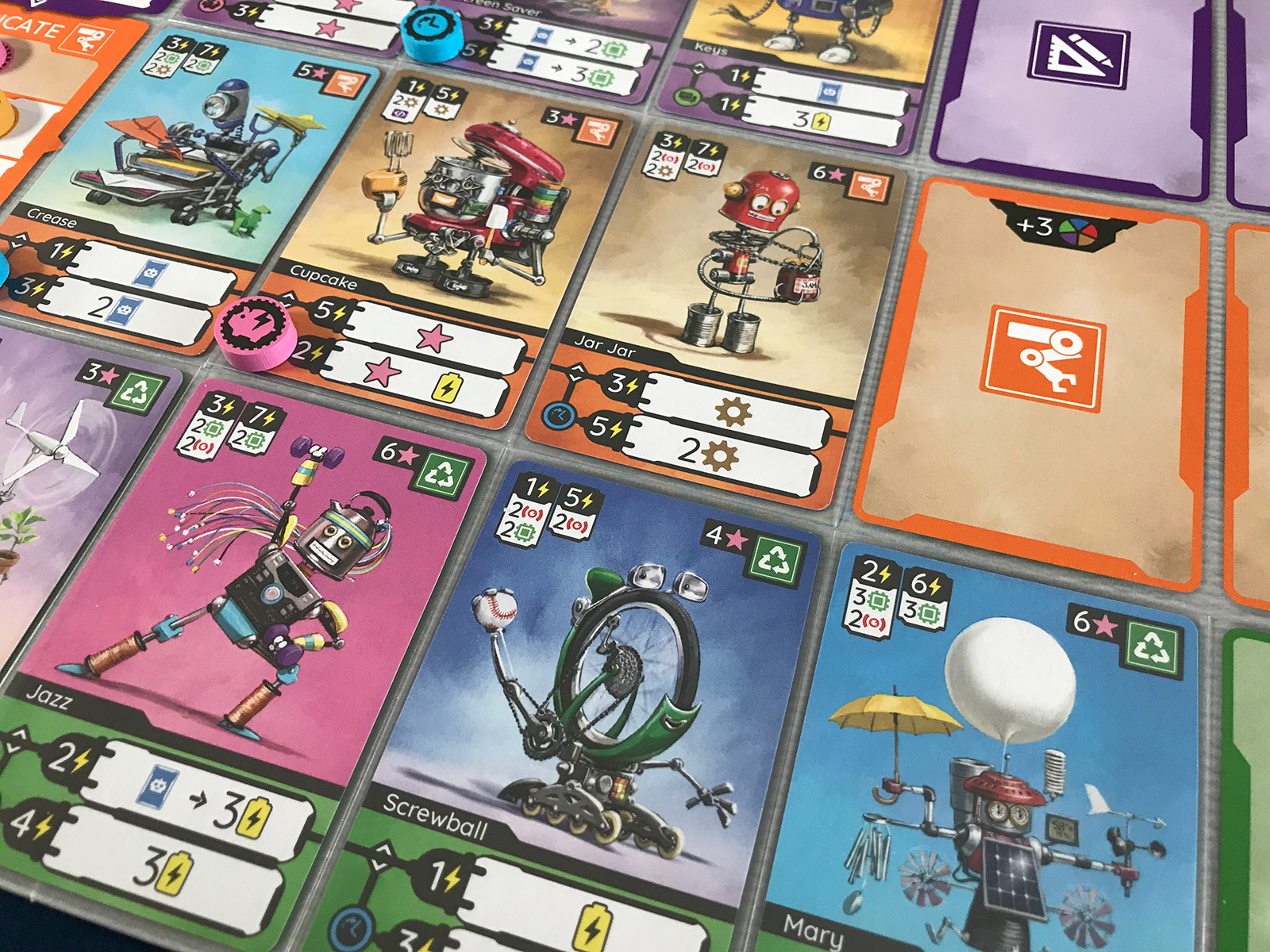 Over the course of 8 rounds, different phases trigger with variable power levels. Figuring out how to make the most of these actions is paramount, as is assembling a bunch of awesome robots with cool abilities! Upgrades also add more to the mix for a fun, challenging experience.