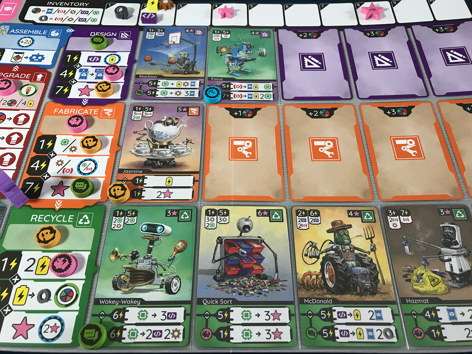 My recycle row was excellent for batteries, but Jazz was never upgraded… This cost me a card, which I foolishly activated too much. Not enough robots to assemble!