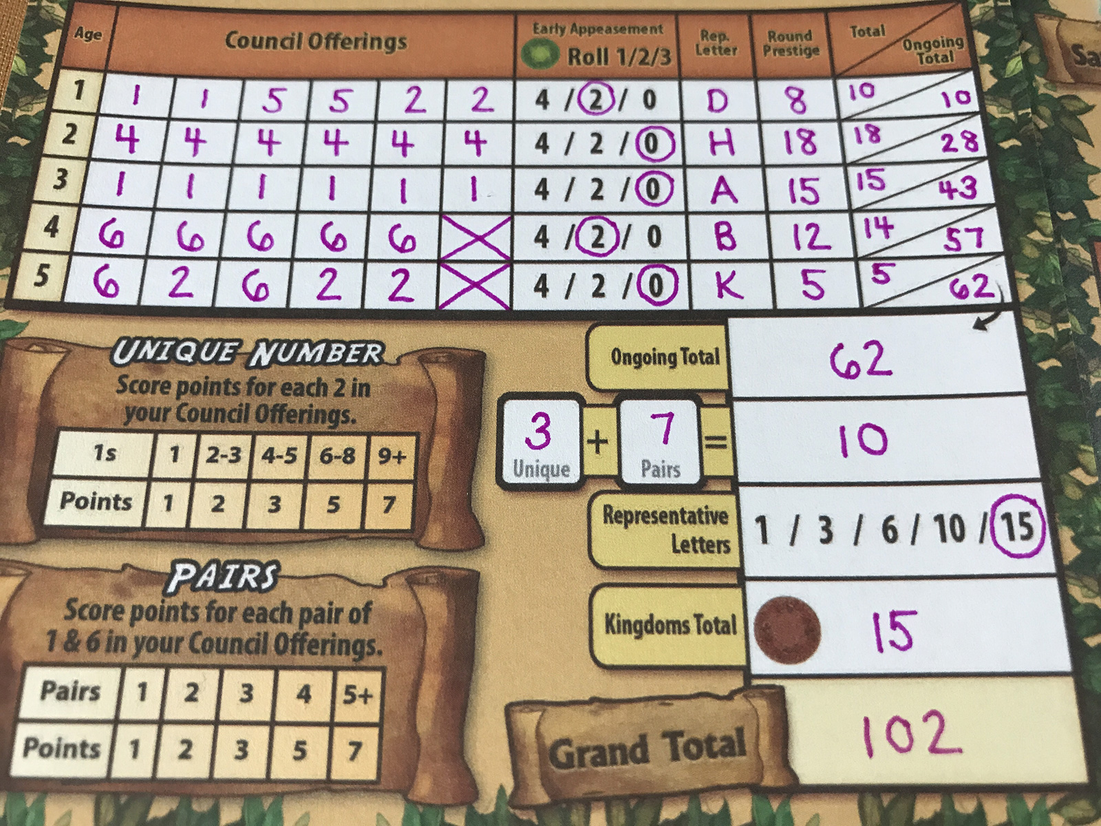 • Dice may be used to offer to the council or fill up the kingdoms, and some sort of balance is needed to do well.