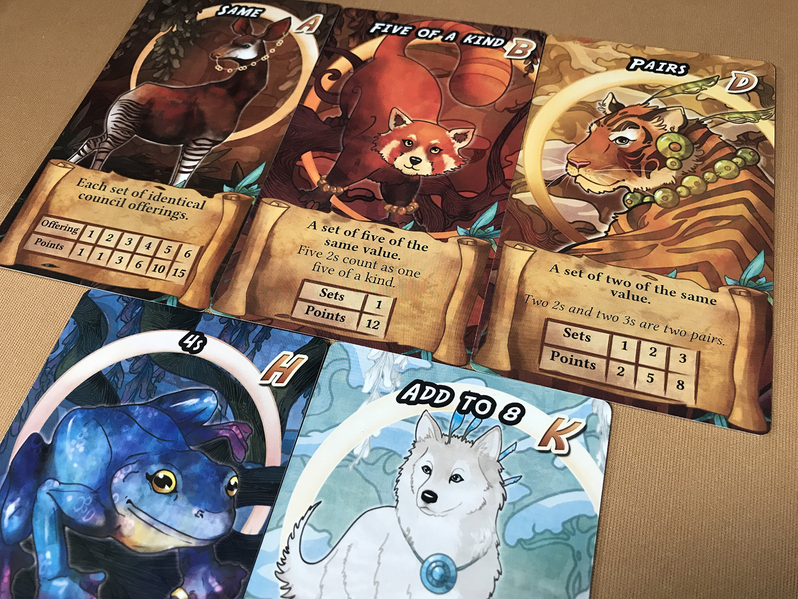 Each animal wants a specific set of dice. An age allows for up to 6 dice to be used to meet these requirements, while kingdoms can be filled for other victory points. It all plays rather quickly with interesting decisions and the outcome: Will there be enough victory points to rule the animals?!
