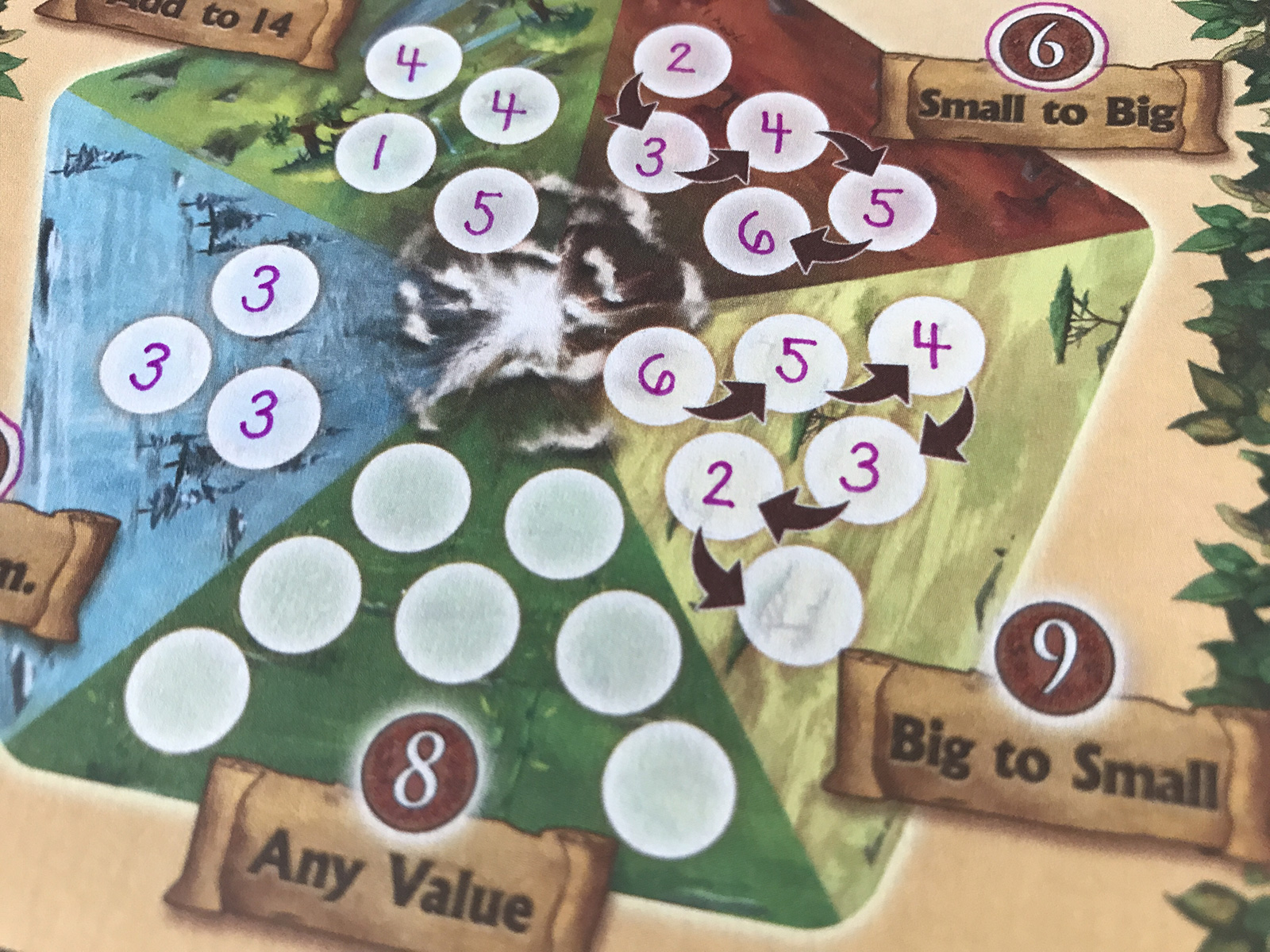 The 1 value featured all different animals, which was rather neat! Yet again, it made it hard to read the dice.