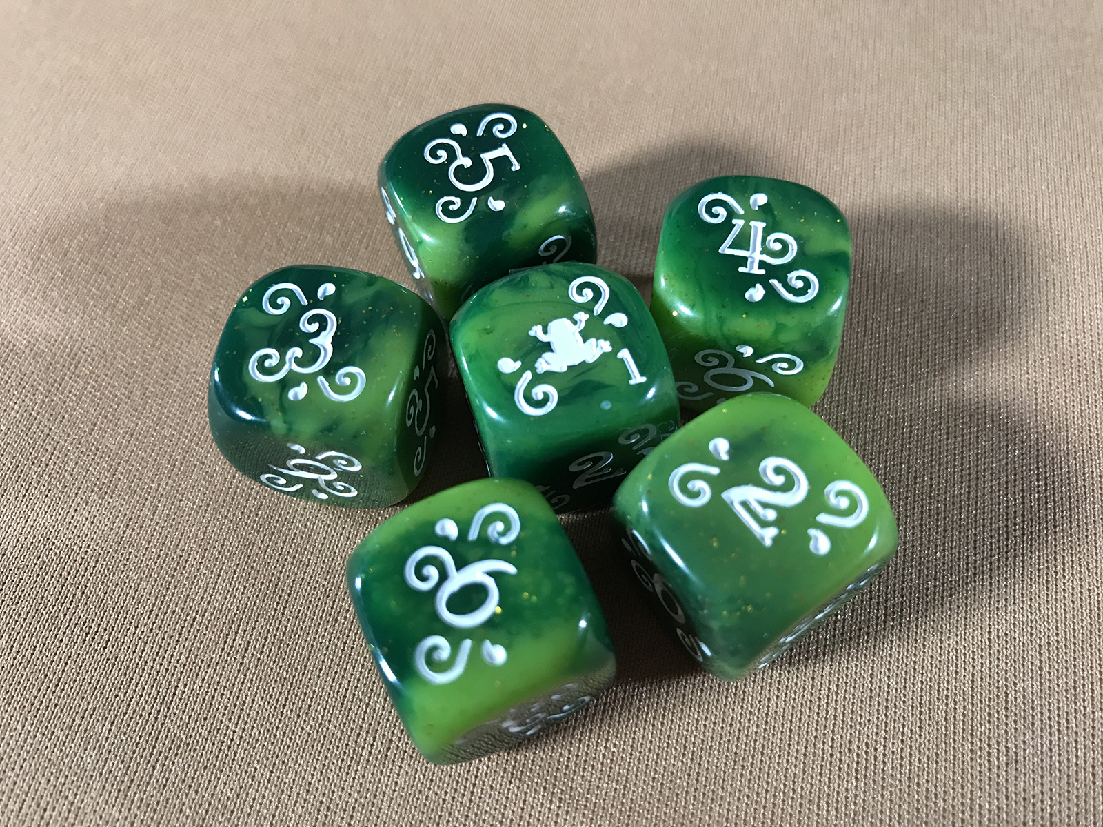I initially thought the whirls were unique to each number, and maybe they are? But I had to line these up after every roll to clearly see all of the numbers. A little distracting.