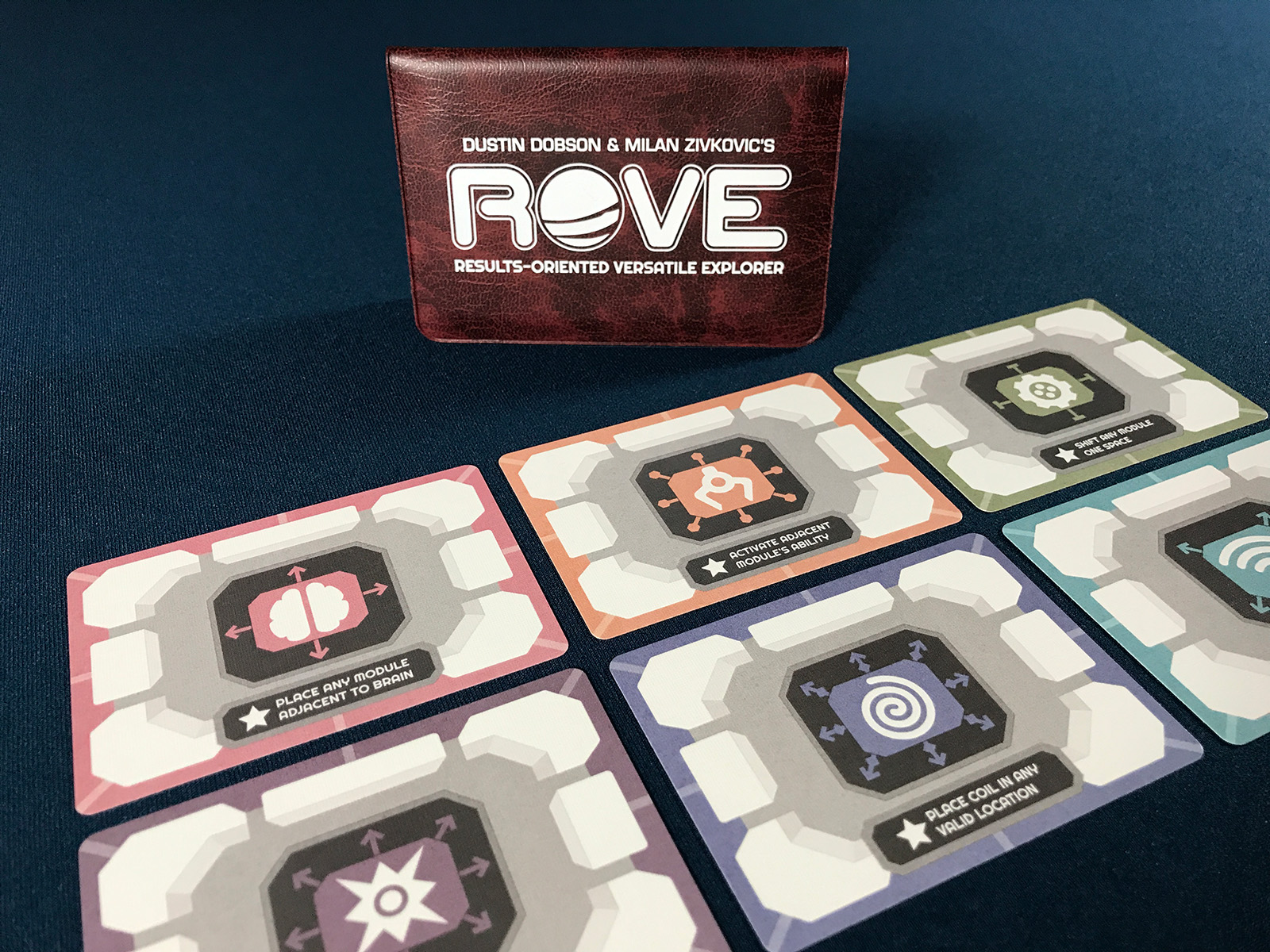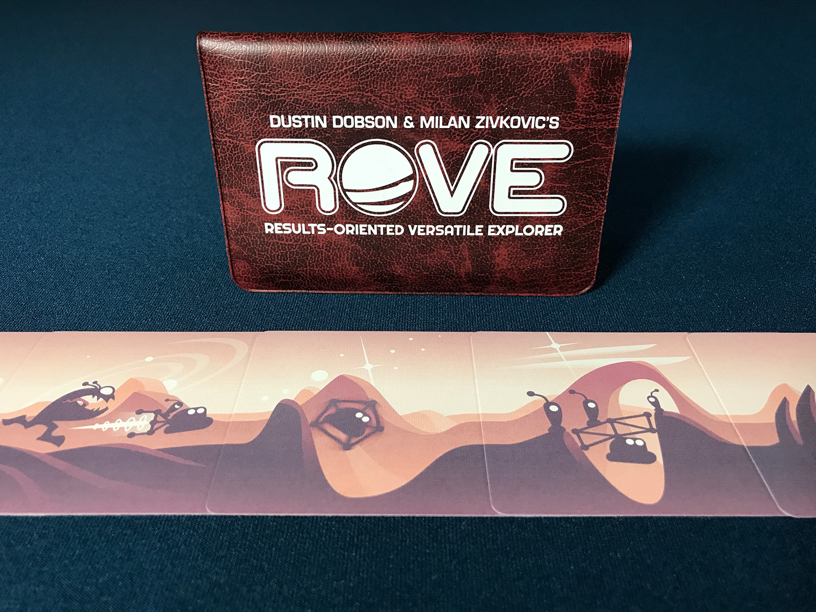 The genre of space-related games is vast, ranging from the smallest games to expansive options that require a full gaming table! ROVE: Results-Oriented Versatile Explorer is a very compact choice that offers a spatial puzzle with a sort of narrative panorama for completed missions. I was excited to get these modules moving around on a new planet!
