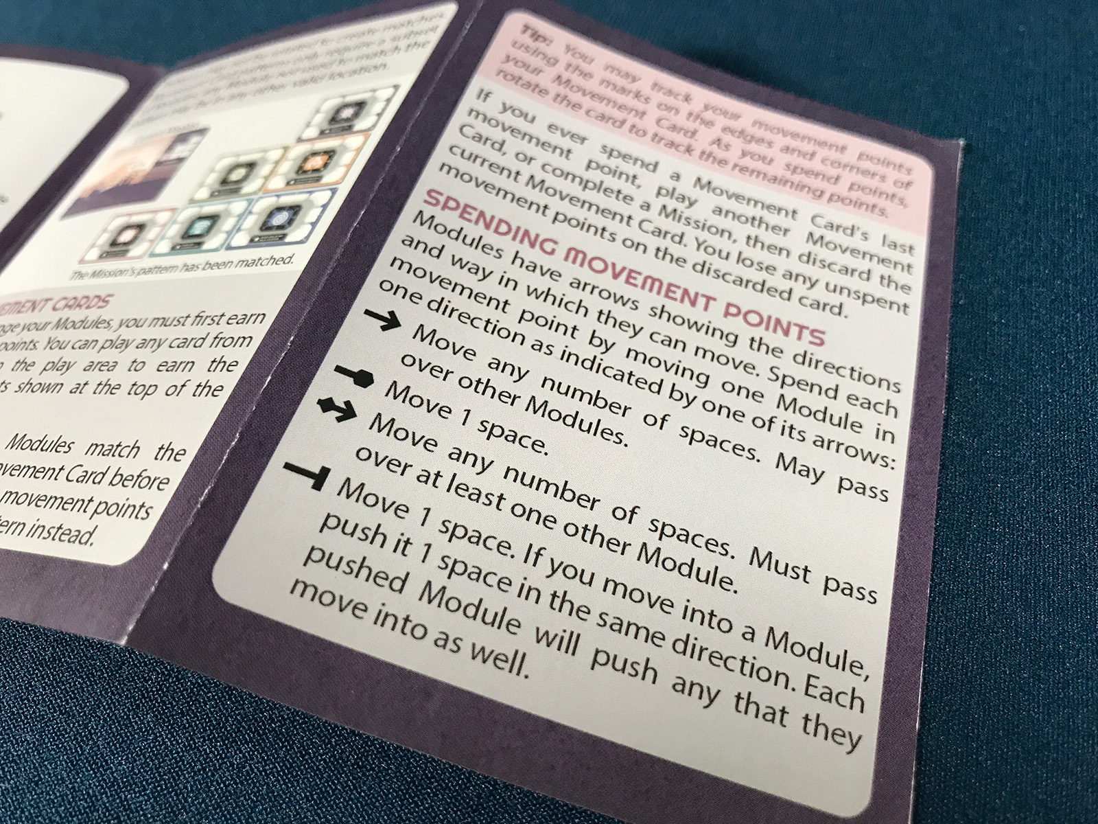Not unexpectedly, the card count is limited by using the back of mission cards for movement cards. Clever!