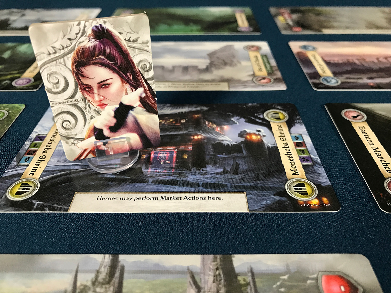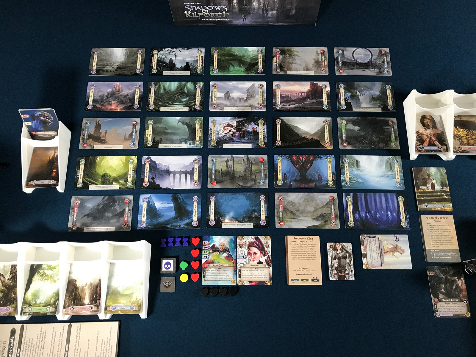 With the larger location cards, this is certainly a play area that makes its mark! The grid offers all of the various places to visit, and some of these begin in gloom.