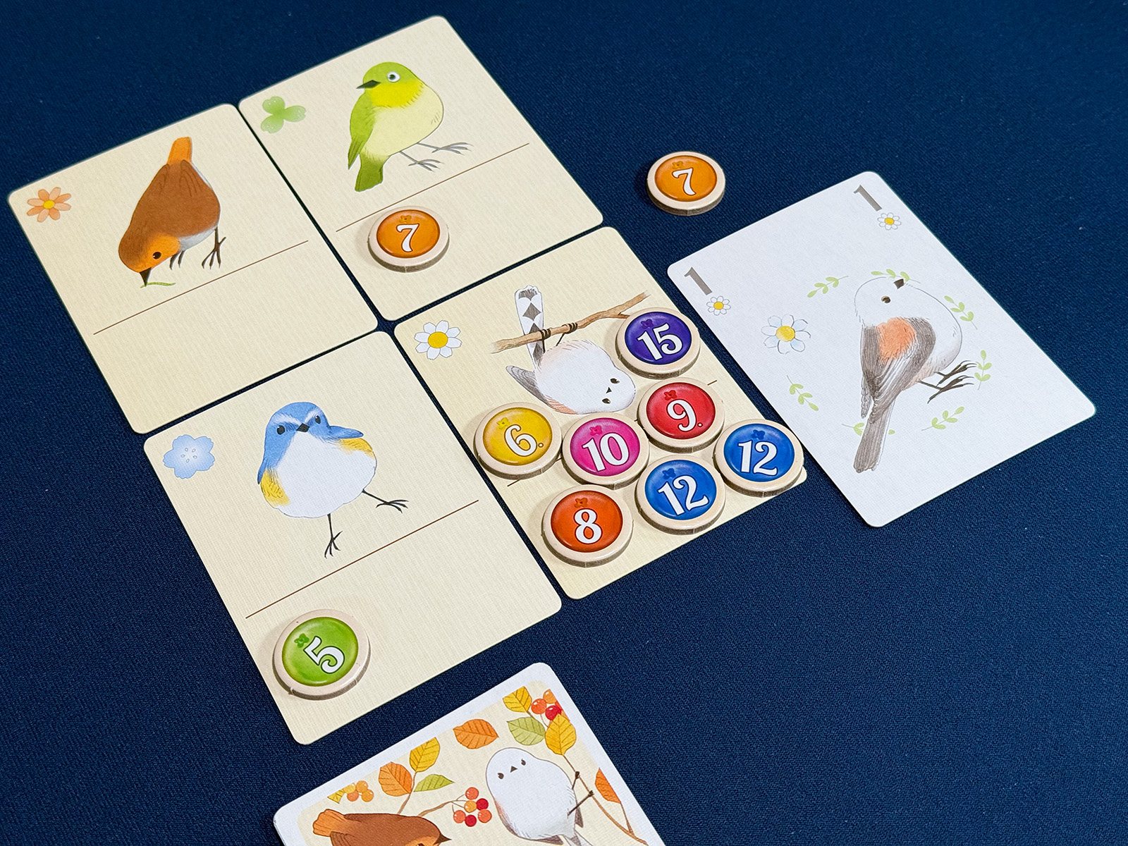 These little snowbirds seemed made for this game, and they quietly alighted on the scoring cards as soon as the berries started to collect. I could sense hunger in this group!