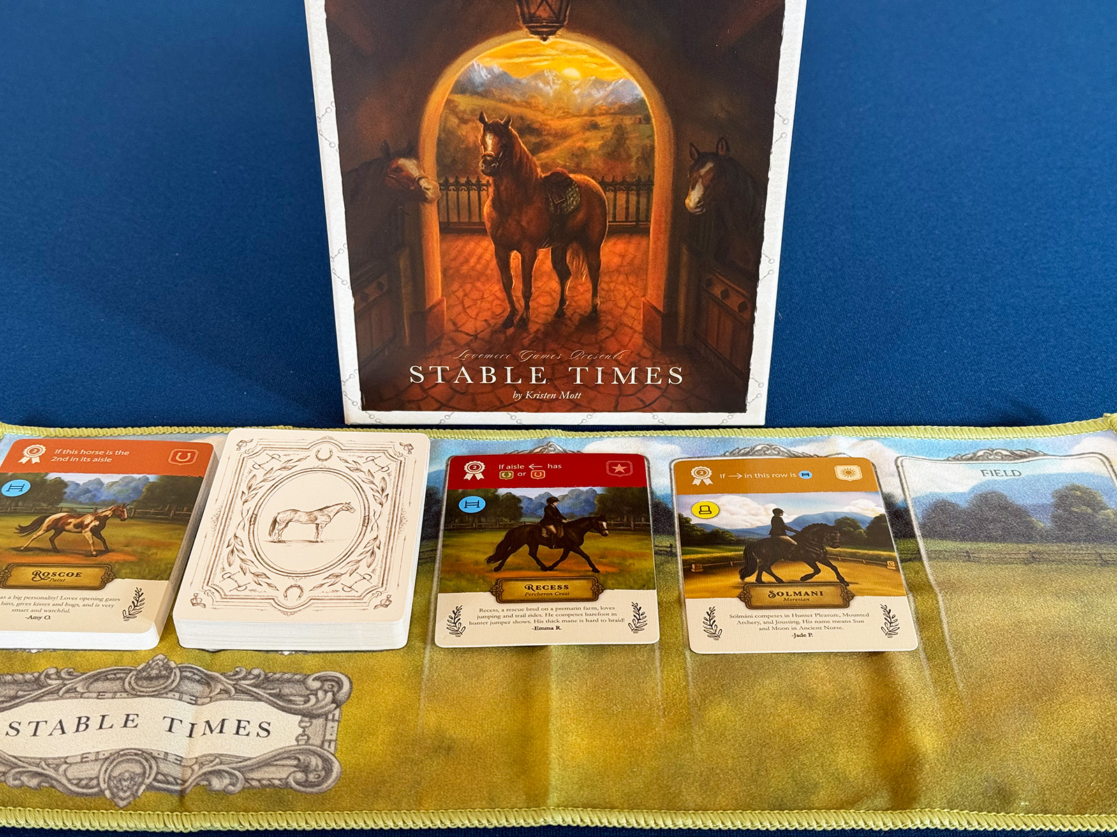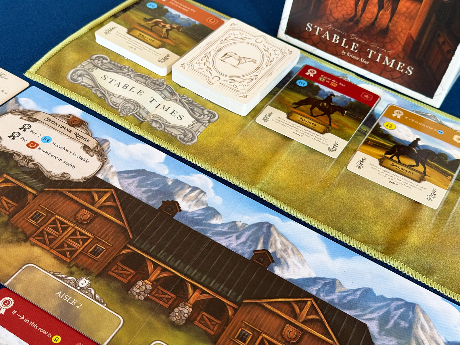 Let’s go! As someone who’s always enjoyed horses, along with an array of video games, I was excited to saddle up and check out Stable Times. Yeehaw! Well, this one isn’t exactly about riding, yet it features all sorts of horse artwork and a simple set of mechanics. I had a whole set of puns lined up as I set up the components and prepared to gallop to my table!
