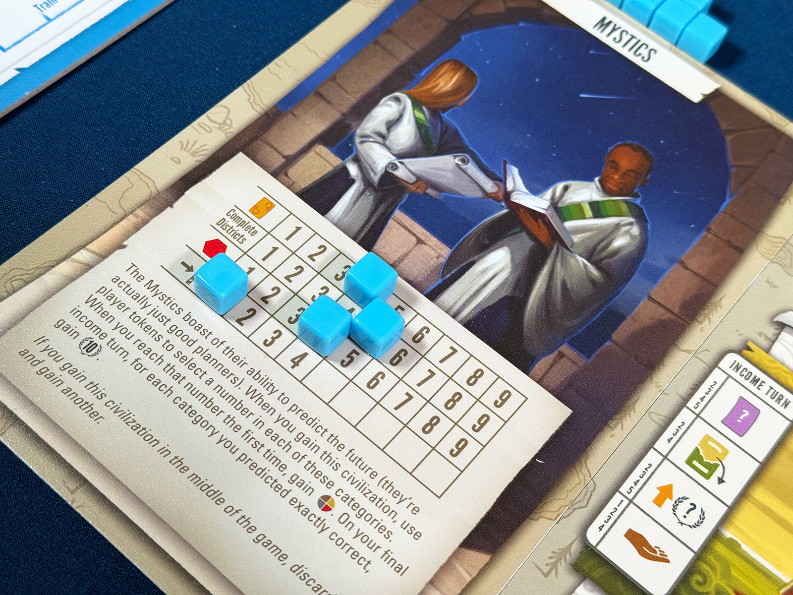 Mystics! I forgot about this civilization, although I played as them in the past. It’s all about predicting what might happen with things like inventions and completed tracks.