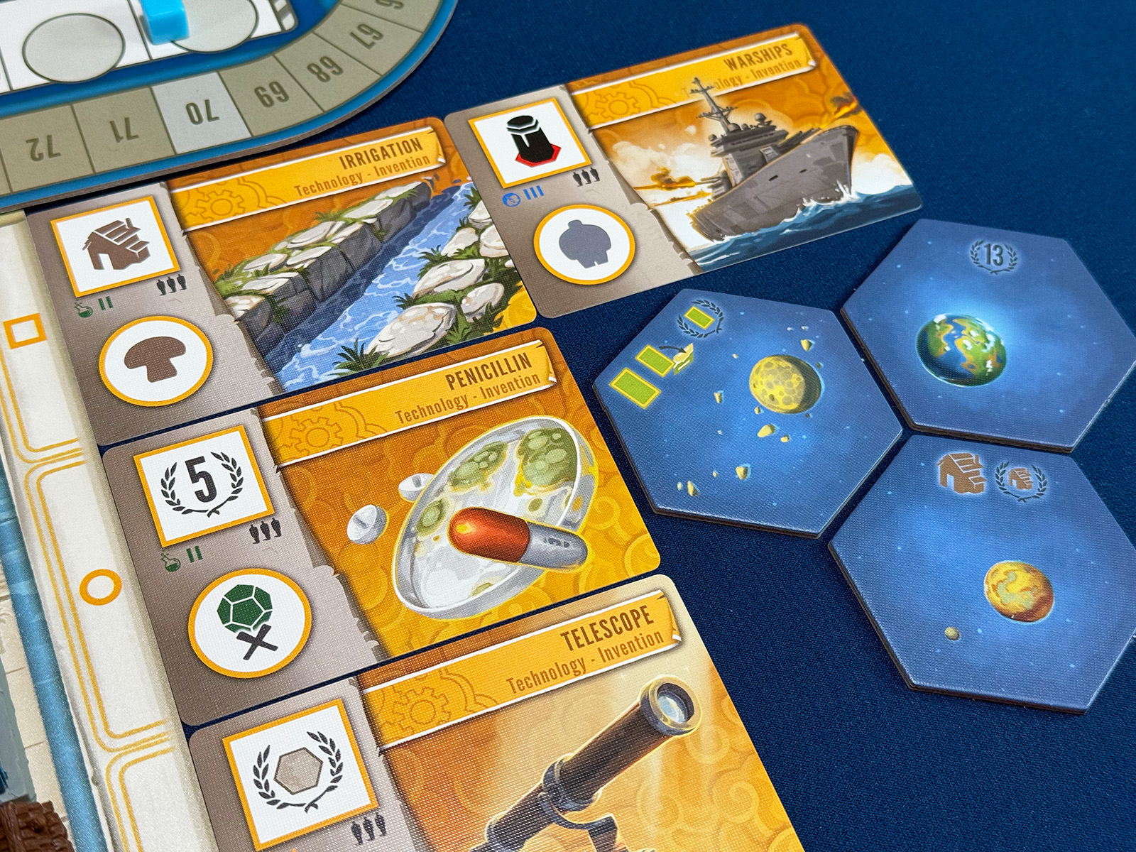 Such a cool way to end this second play, and perhaps I should have seen it coming with the inventions. That telescope was definitely the start of space travel! It was wonderful to return to this solo game after so long, and I’m now beyond excited to try out all of the expansion content for it I never used before. Should be a lot of fun with even more possibilities and, more importantly, stories!
