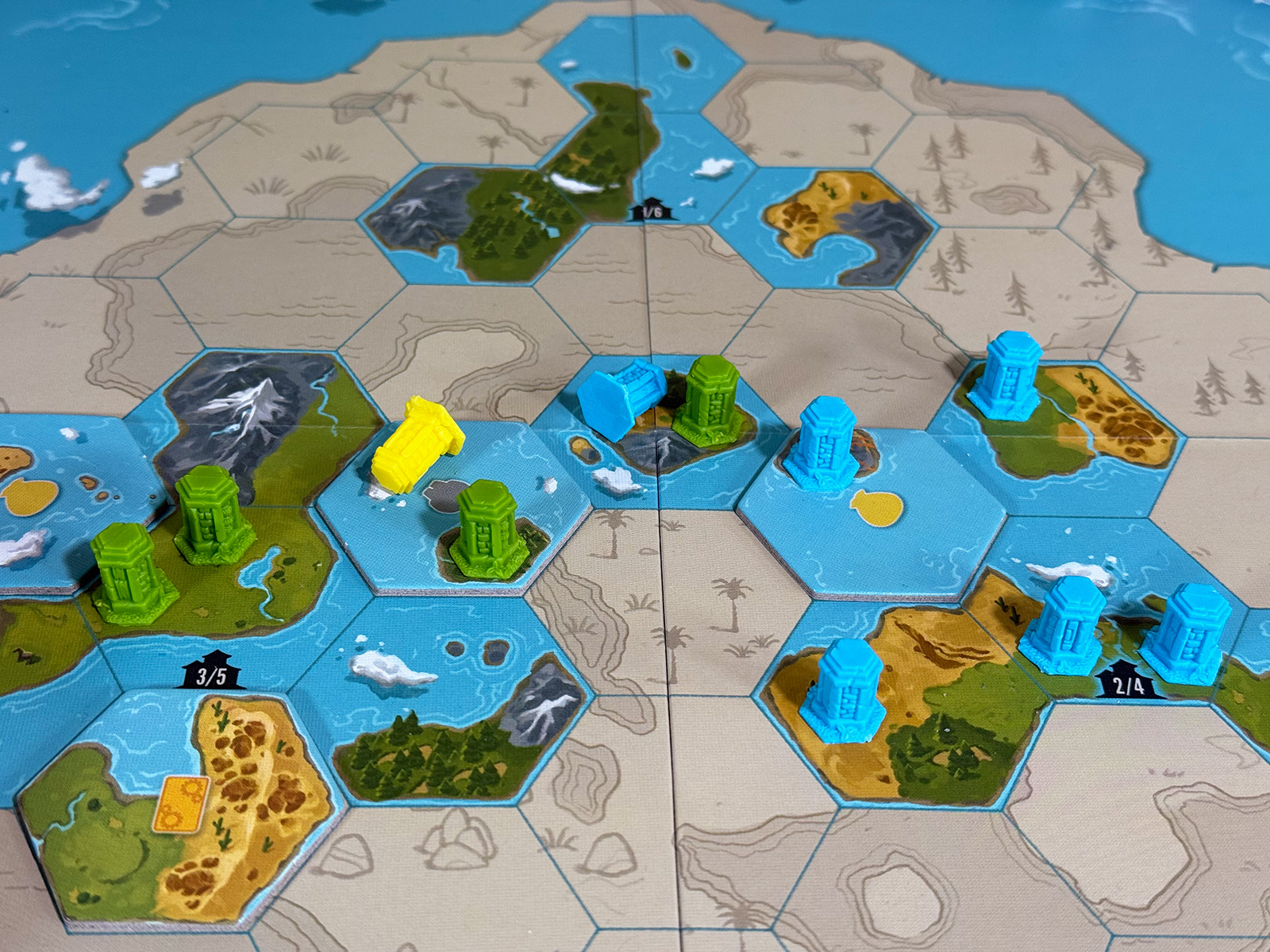 After struggling with a solo opponent who constantly advanced on the military track, I was surprised at this rather quiet situation on the main map. Barely any toppling!