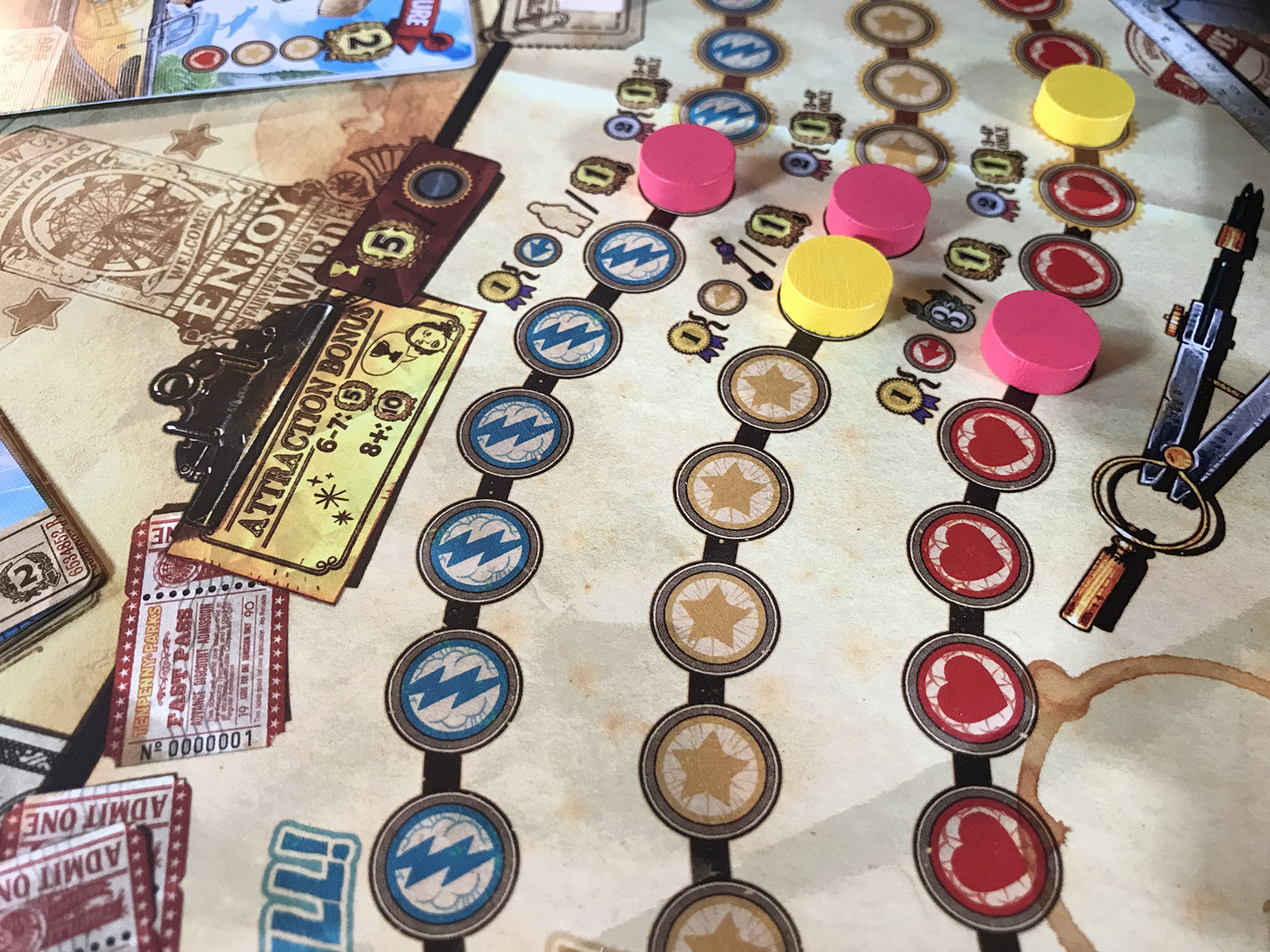 I just couldn’t quite reliably pull ahead on any of the tracks, despite some better moves. My theme park did end up being the most awesome, though. I’ll take it! There were some great moments when I ensured that Becky wasn’t able to advertise nor gain the bonus for a track. Yet this one is going to take some more puzzling through to figure out the best strategy to pull off a solo victory!