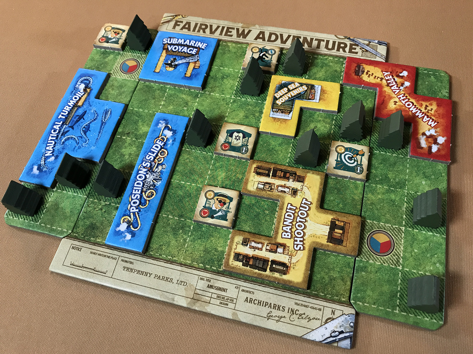 My love of the theme park genre is mostly limited to the tabletop nowadays, courtesy of motion sickness. So when I spotted Tenpenny Parks and all of its vintage rides, I couldn’t wait to experience all the fun! The actual construction of polyomino pieces made it seem even more real, although I got lost in the awesome artwork. Onward to the table!