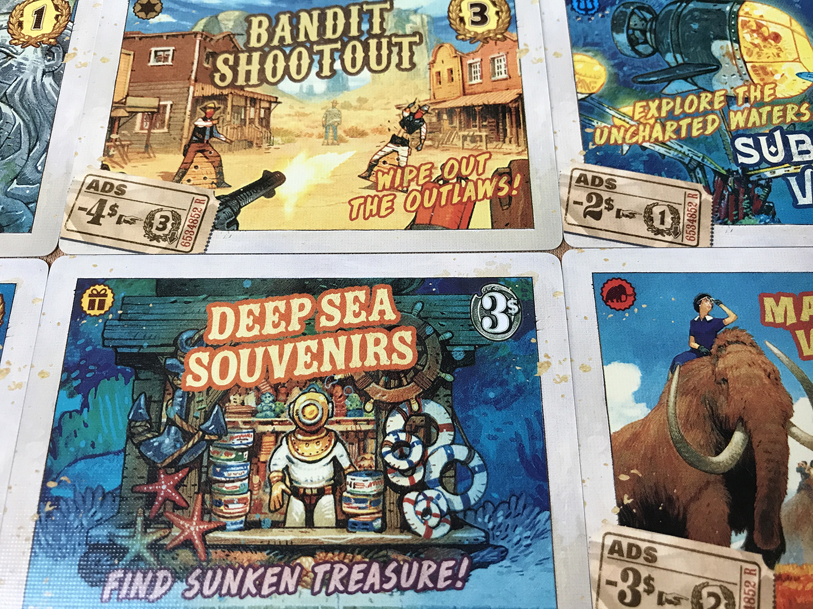 These weren’t just there to look good, though. Each showed either final victory points or extra money earned as income. My Deep Sea Souvenirs were lucrative!