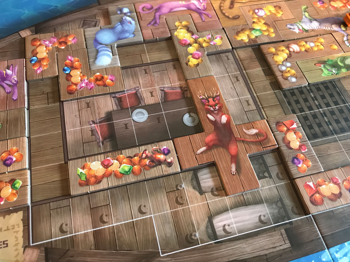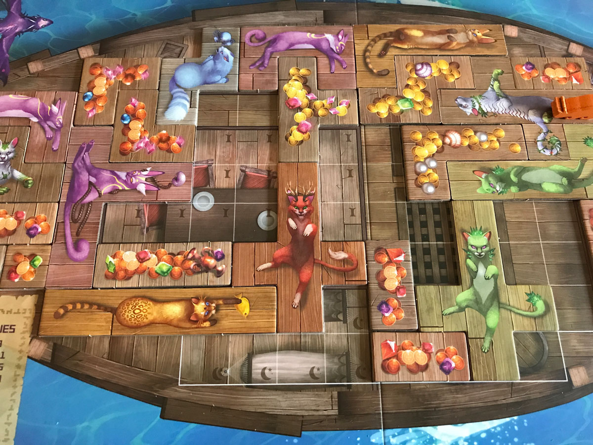 The concepts are straightforward enough: Fill up a ship with different cats and treasures! I got started right away during the first turn with some lucky draws.