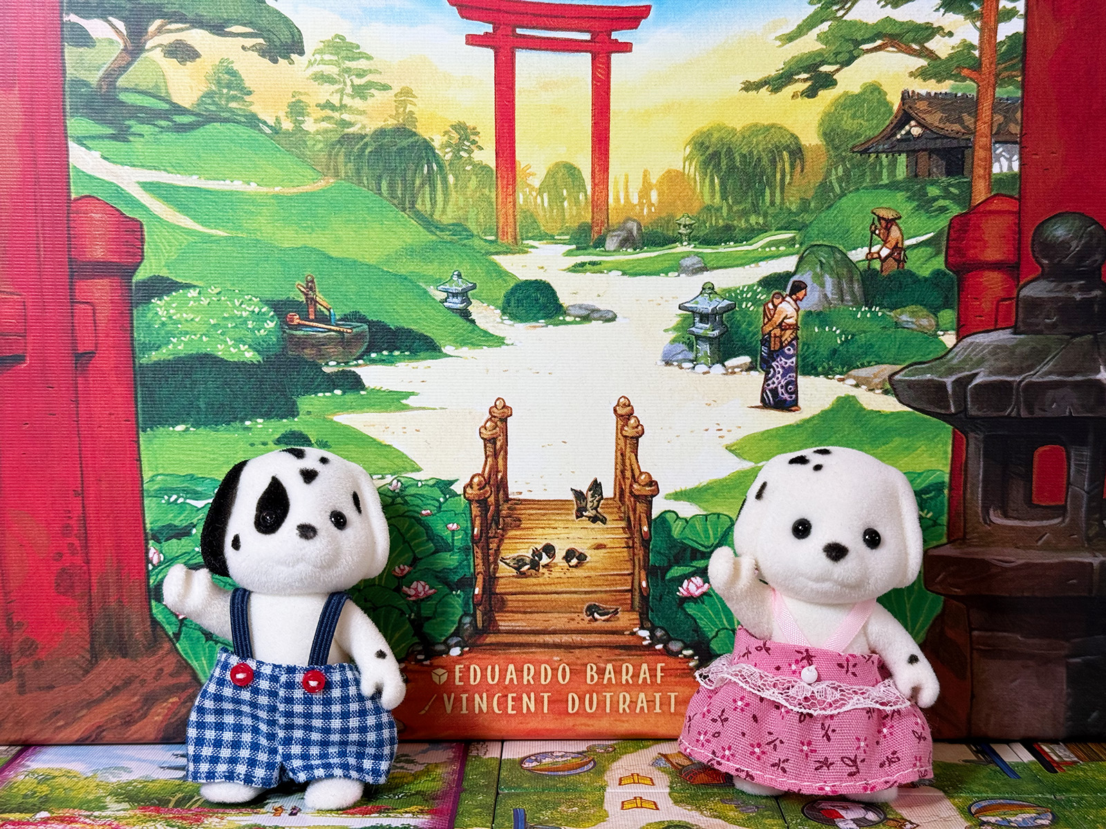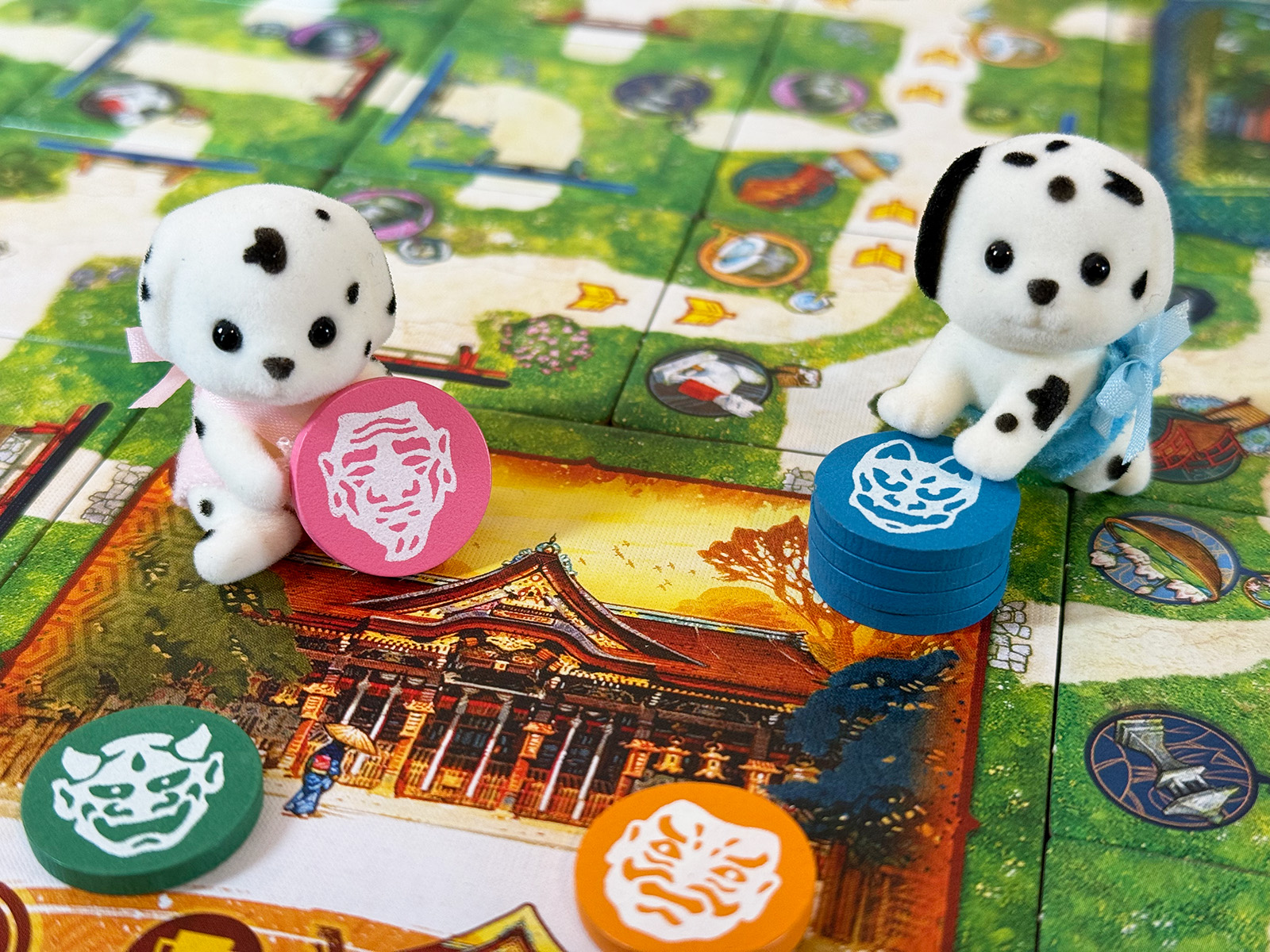 Fortunately, I still wanted to play, and the Calico Critter Dalmatians remained nearby to showcase the Kitano tokens. Definitely my favorite shrine mechanic!