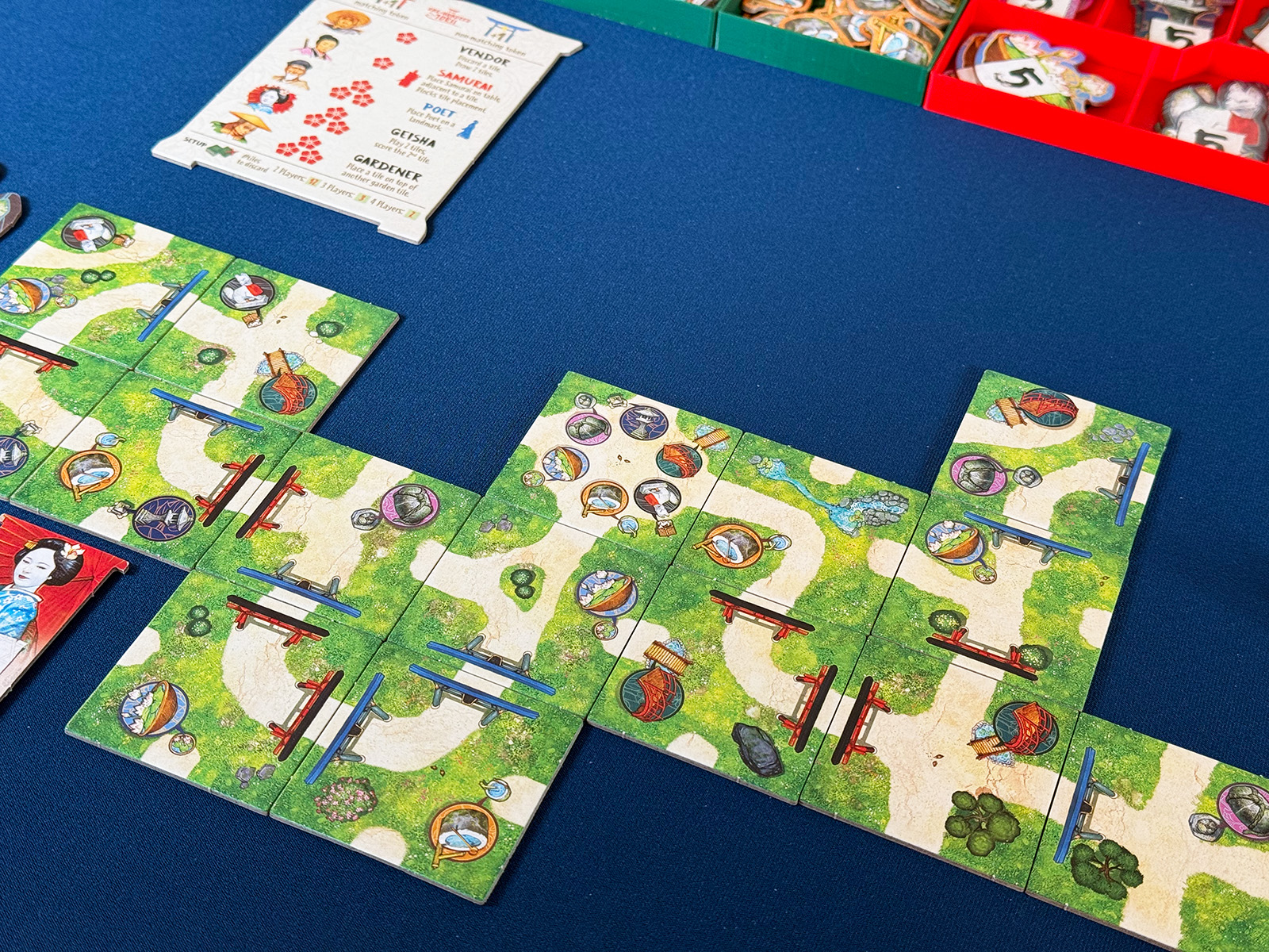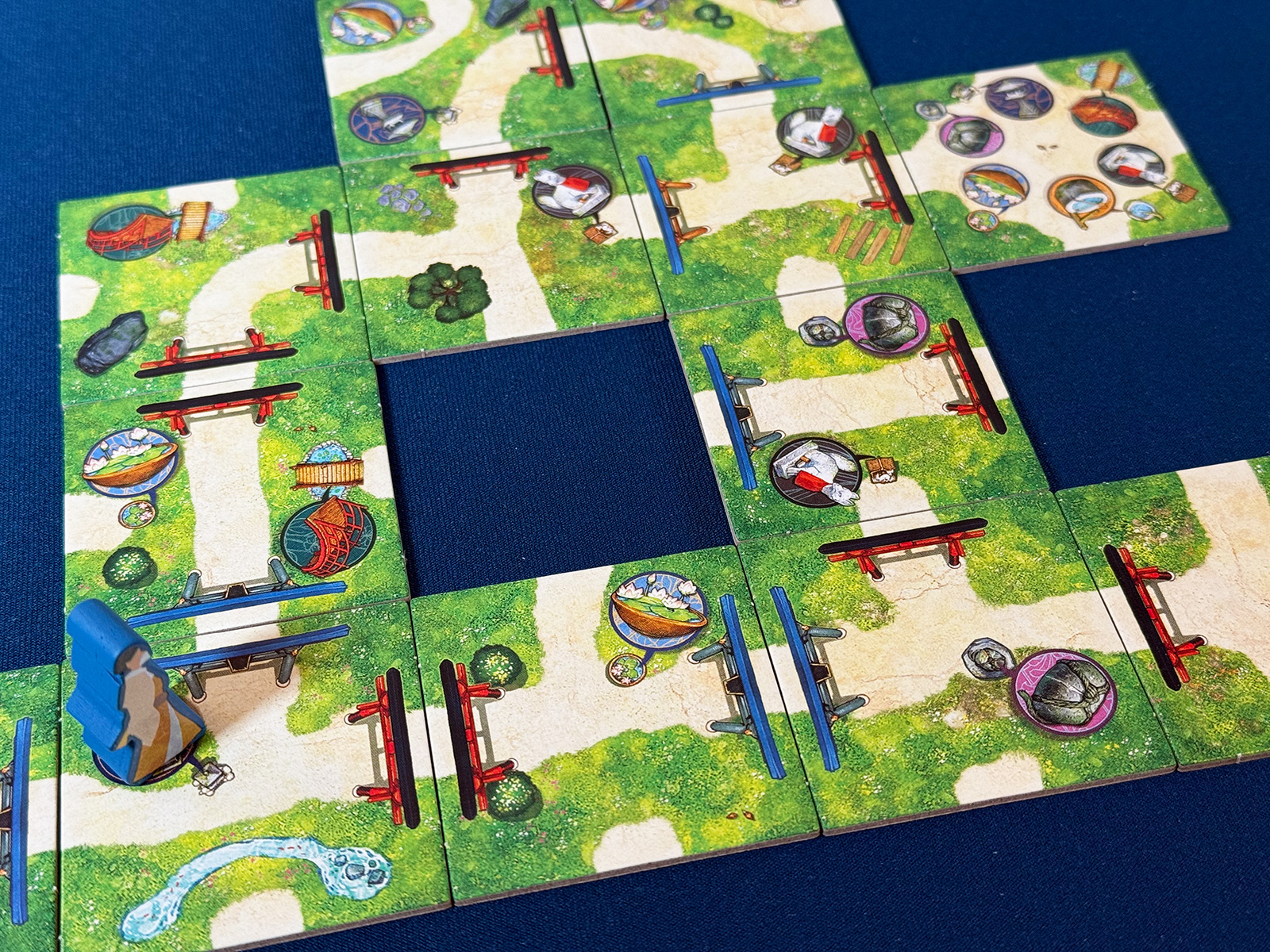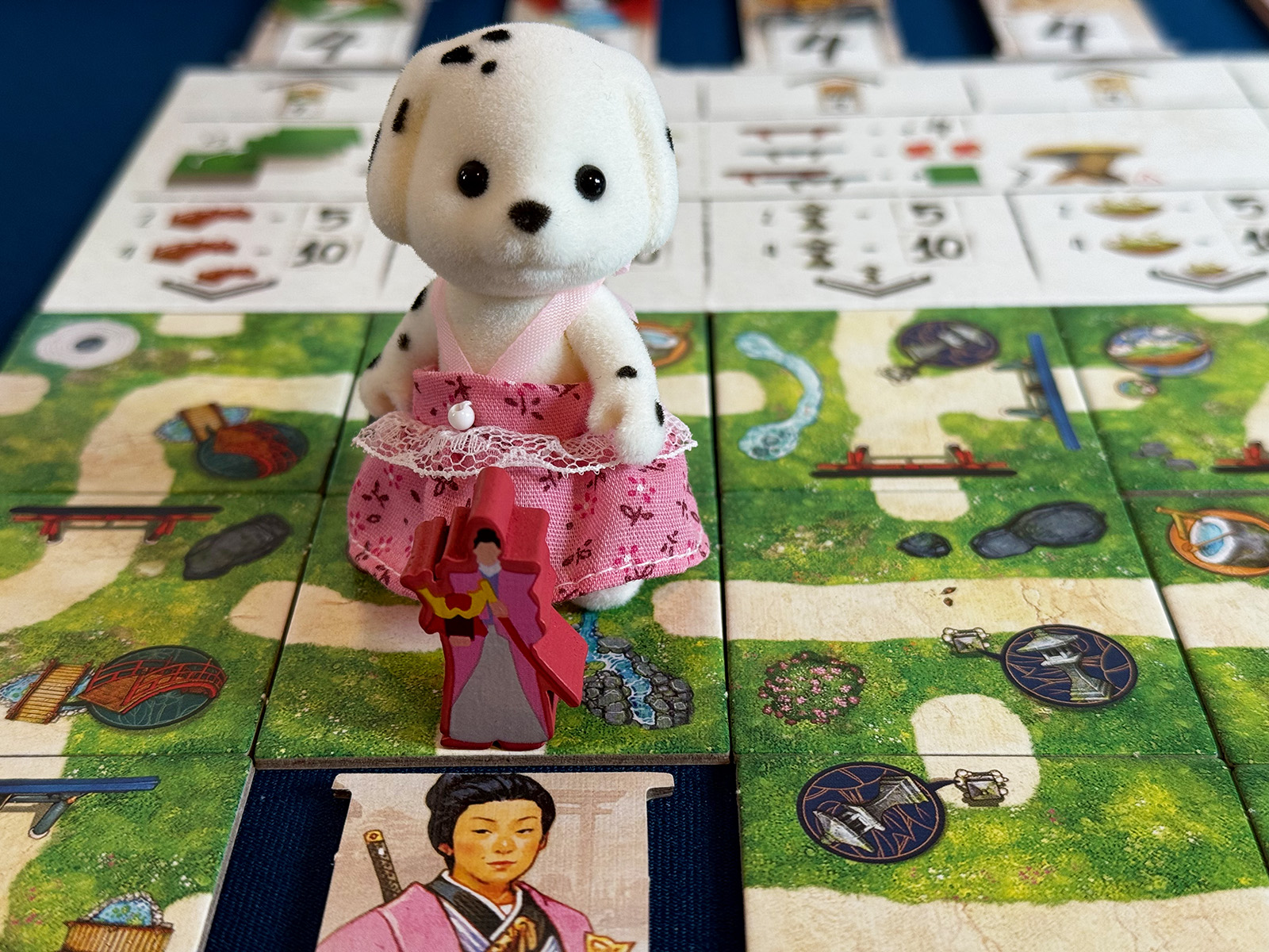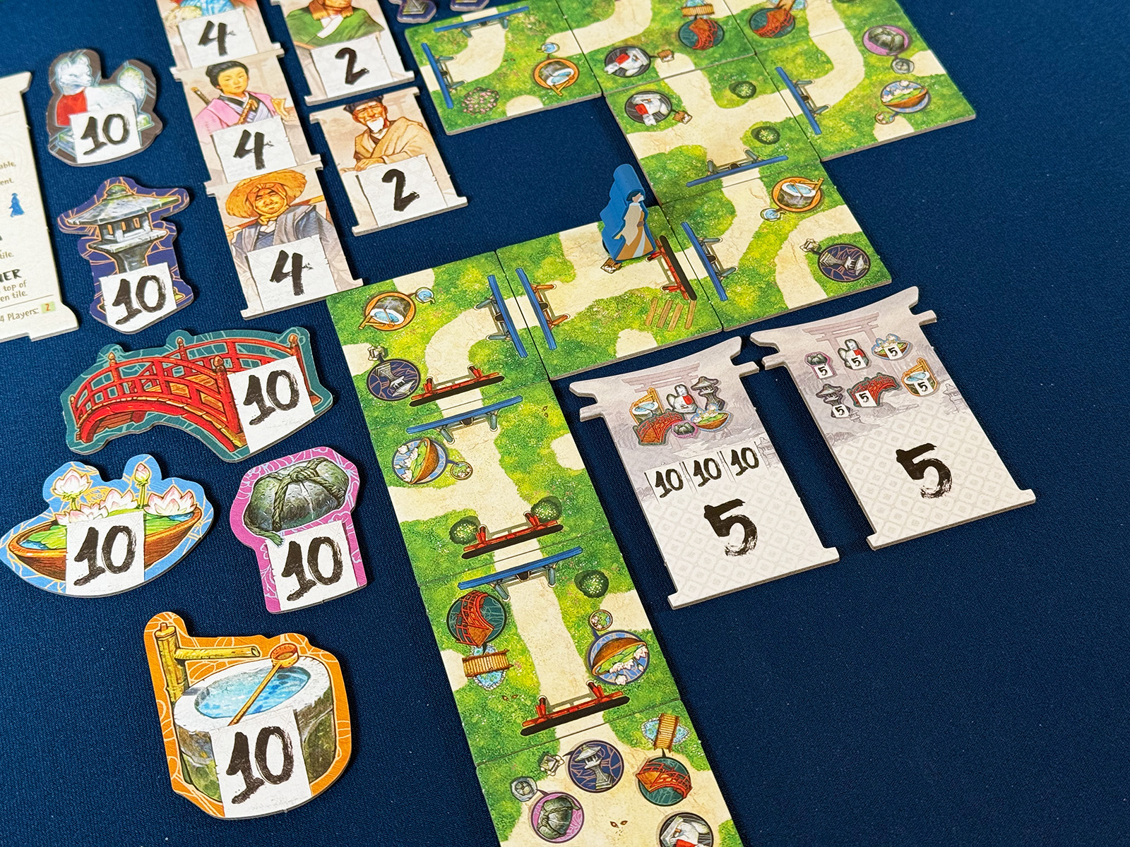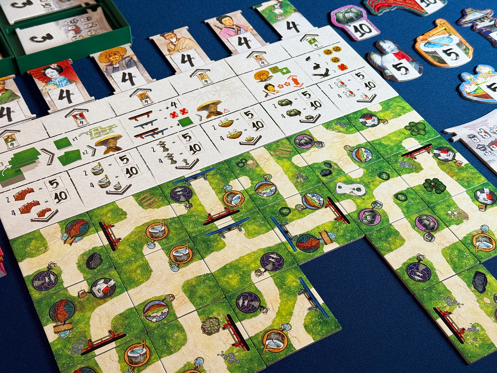 I wouldn’t say that playing actually feels like walking through a Japanese garden, especially since the journey is about counting gates and tiles. But there is something so satisfying about following a path with my eyes, quietly counting how many small tokens I might pick up along the way. Even looking at Onatsu’s area is fun. So many little paths to travel down!