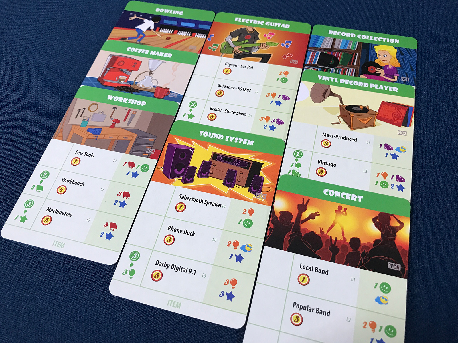 - Stacking completed cards saves space and also showcases the highlights of a character’s life story.